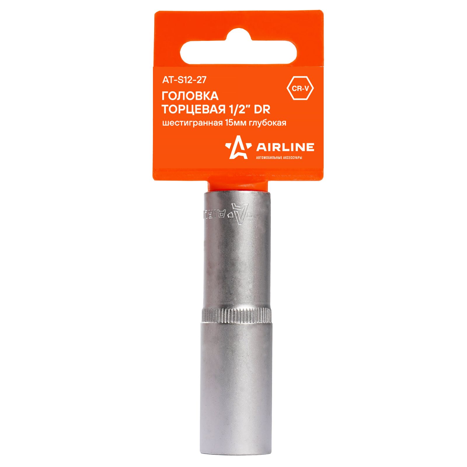 Головка торцевая 1/2" шестигранная 27мм глубокая, пласт.подвес (AT-S12-36)