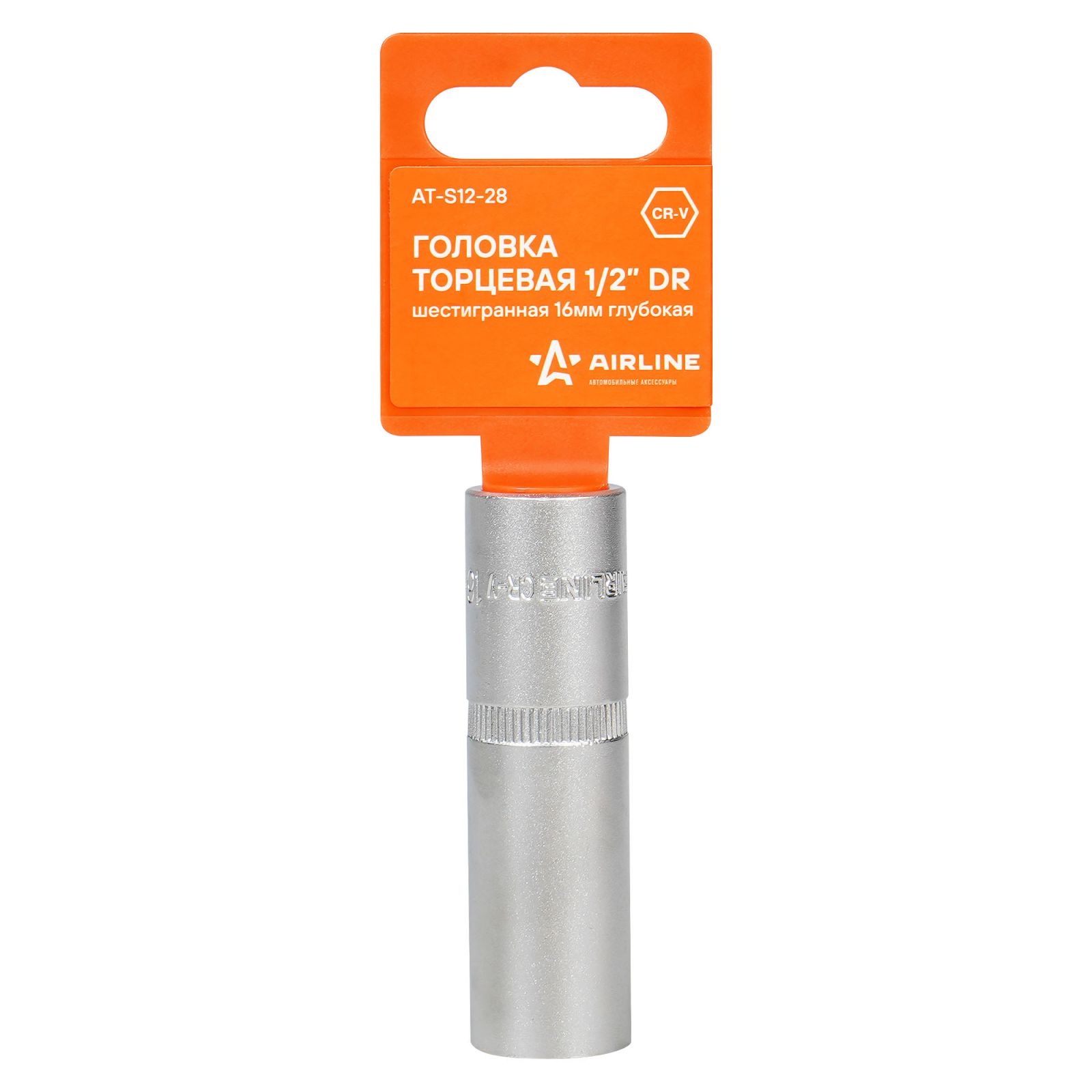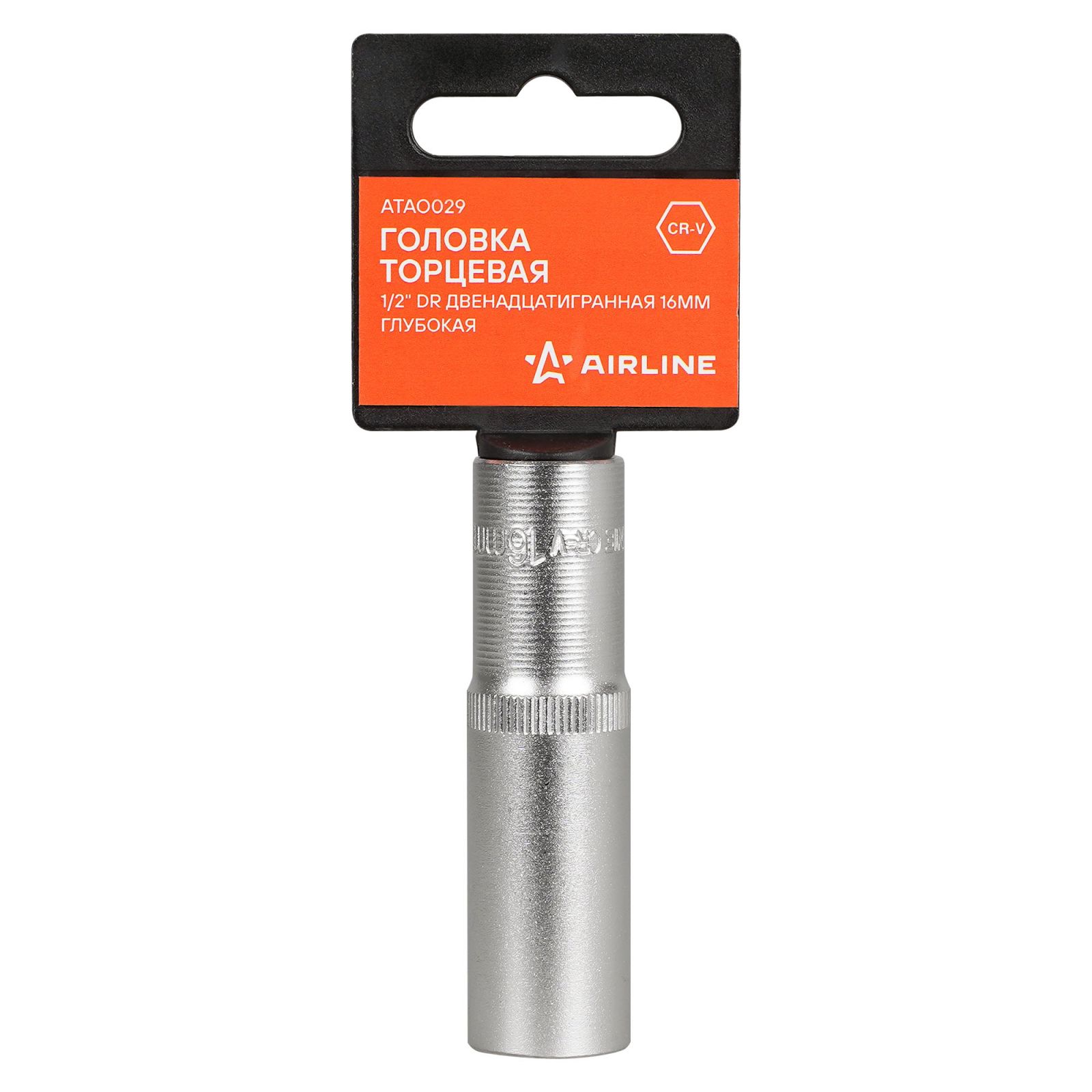 Головка торцевая 1/2" двенадцатигранная 16мм глубокая, пласт. подвес (ATAO029)
