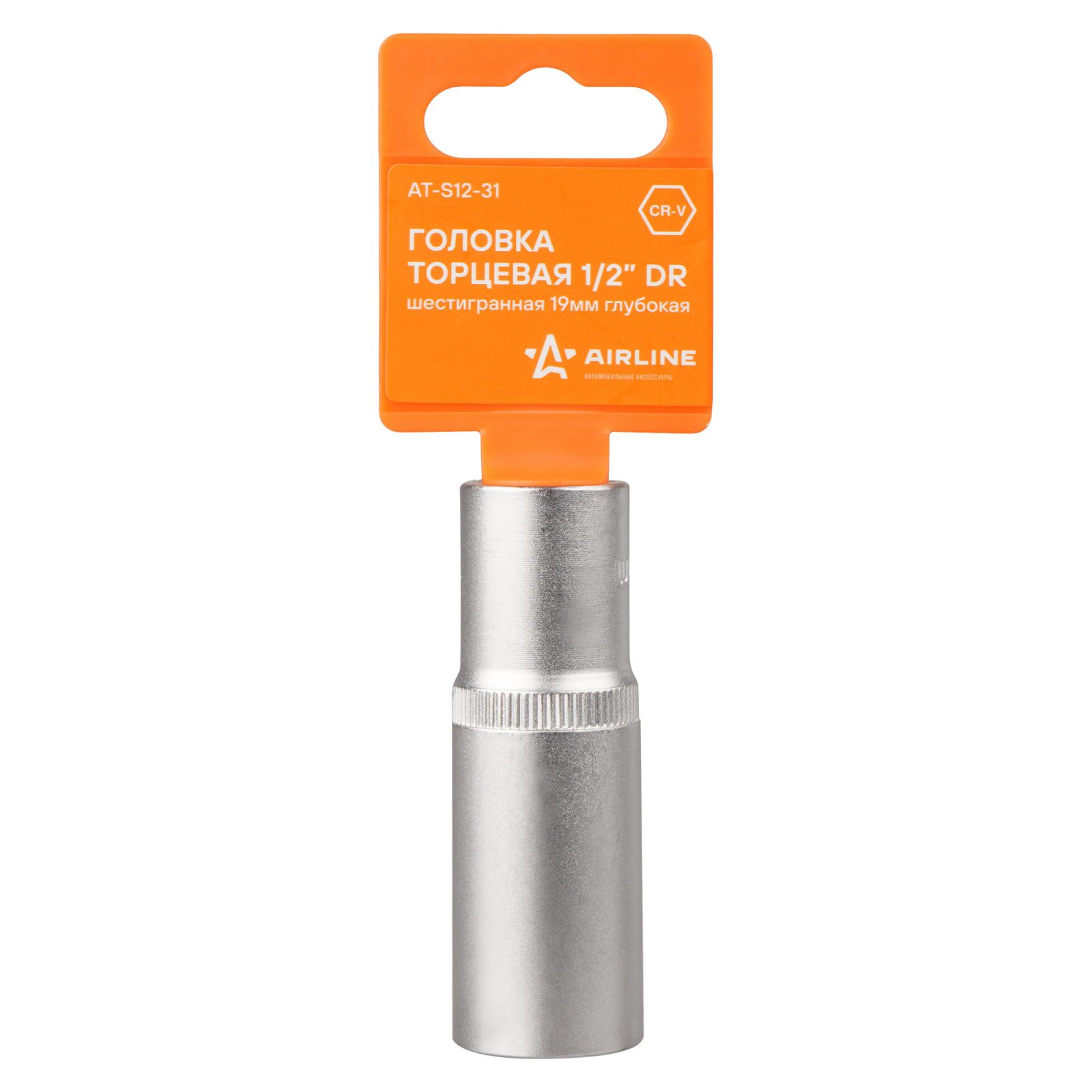 Головка торцевая 1/2" двенадцатигранная 19мм глубокая, пласт. подвес (ATAO032)