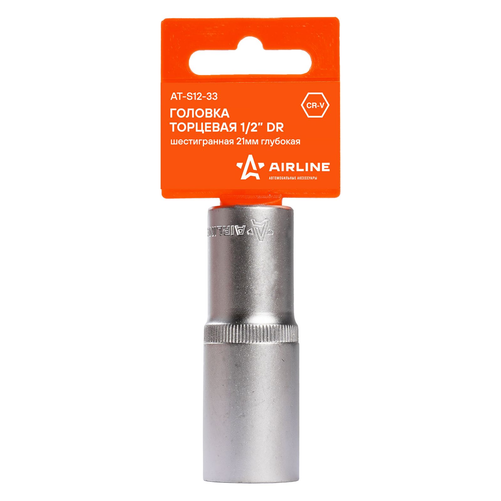 Головка торцевая 1/2" шестигранная 21мм глубокая, пласт.подвес (AT-S12-33)