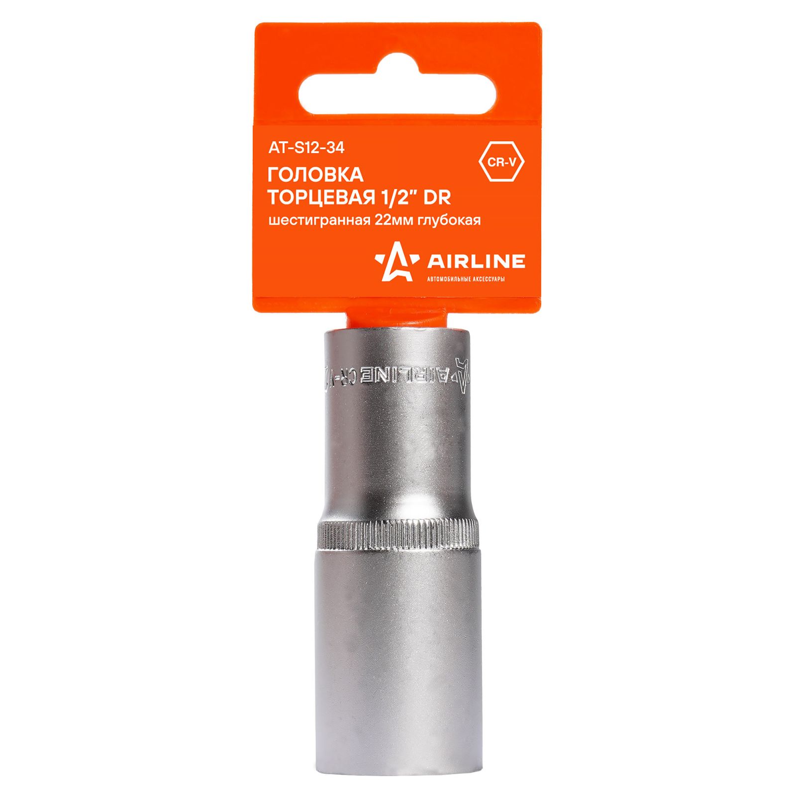 Головка торцевая 1/2" шестигранная 22мм глубокая, пласт.подвес (AT-S12-34)