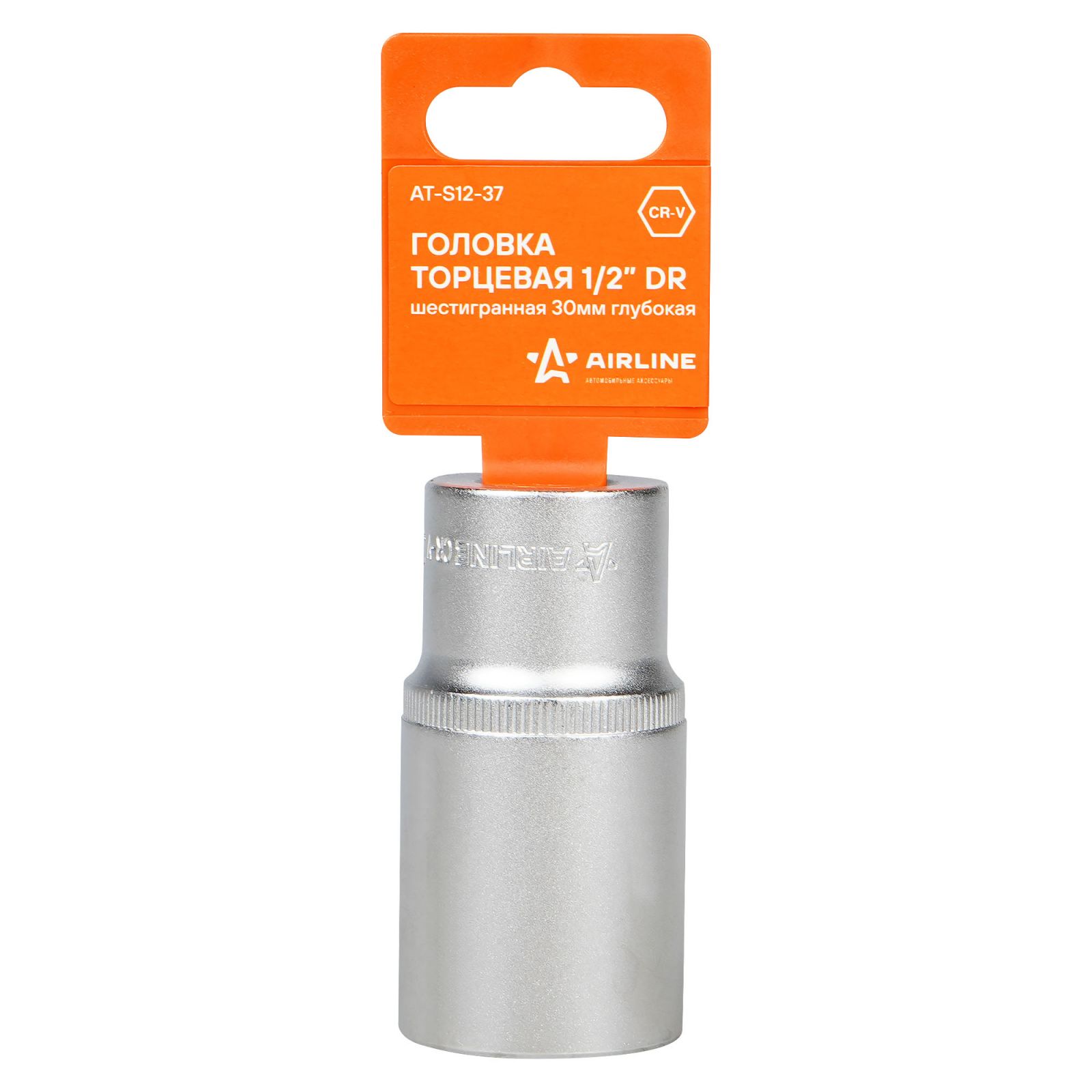 Головка торцевая 1/2" шестигранная 30мм глубокая, пласт.подвес (AT-S12-37)