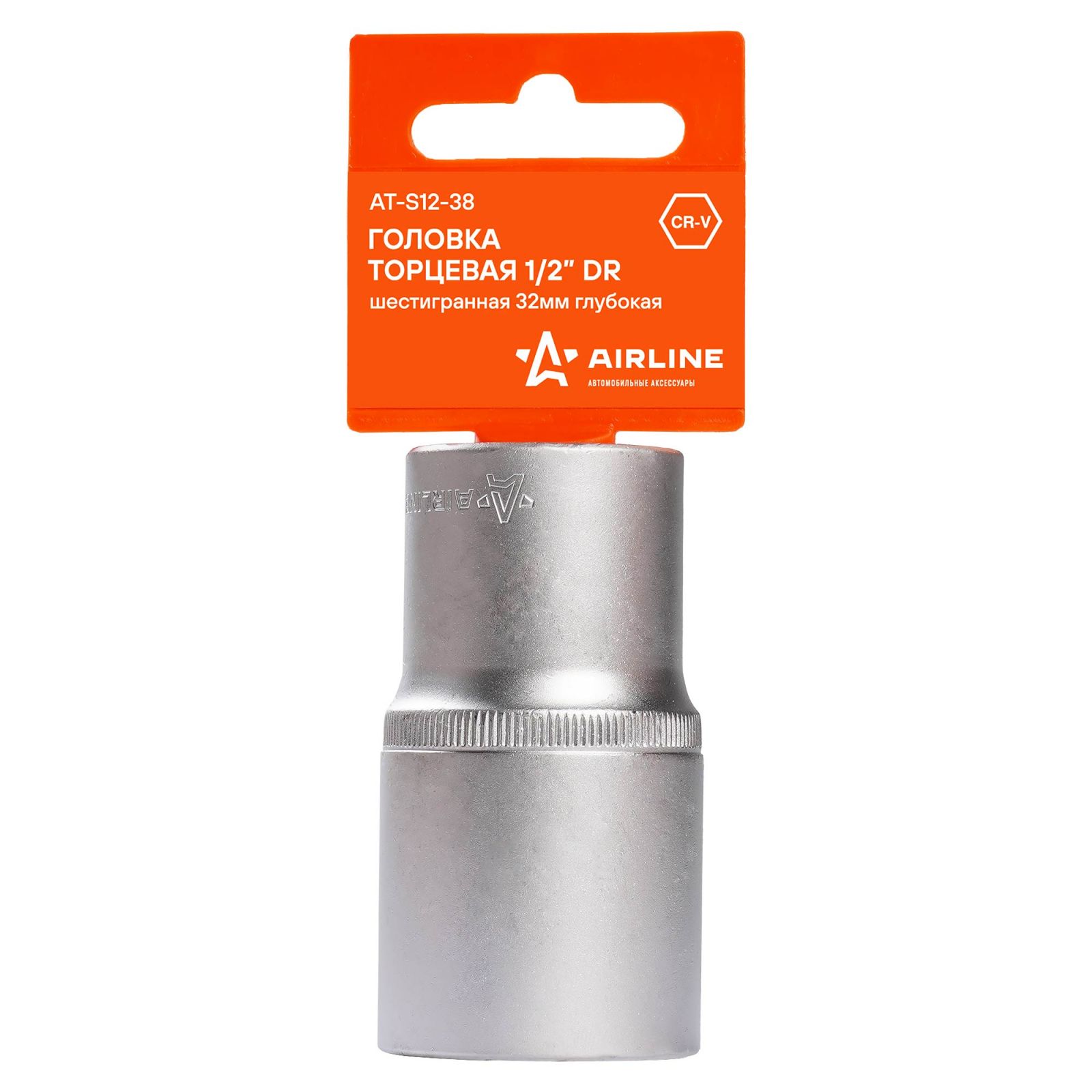 Головка торцевая 1/2" шестигранная 32мм глубокая, пласт.подвес (AT-S12-38)