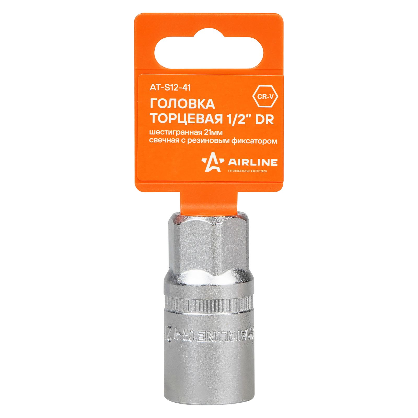 Головка торцевая 1/2" шестигранная 21мм свечная, резиновый фиксатор (AT-S12-41)