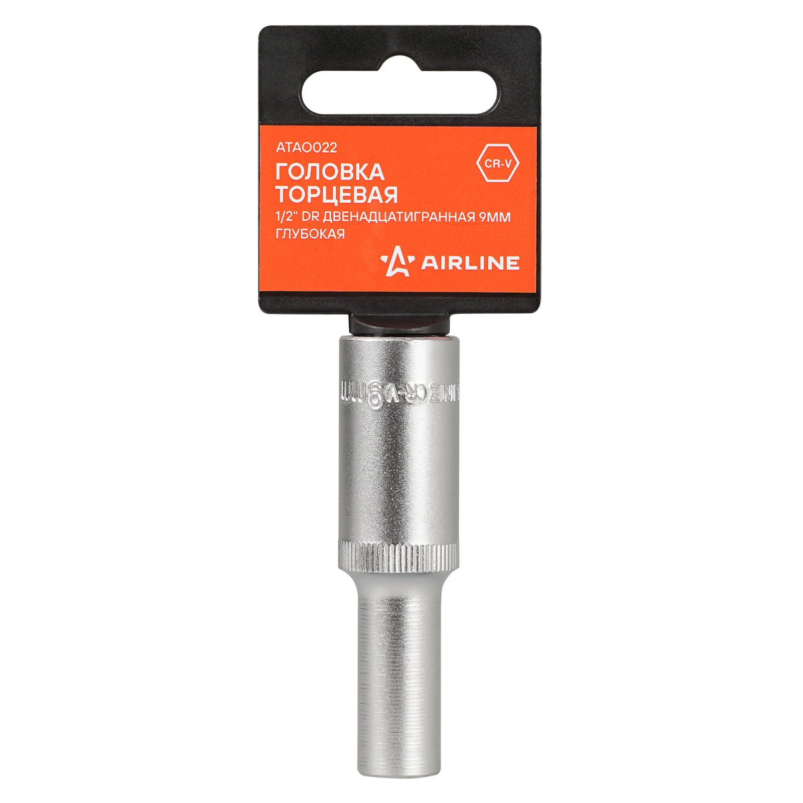 Головка торцевая 1/2" двенадцатигранная 9мм глубокая, пласт. подвес (ATAO022)