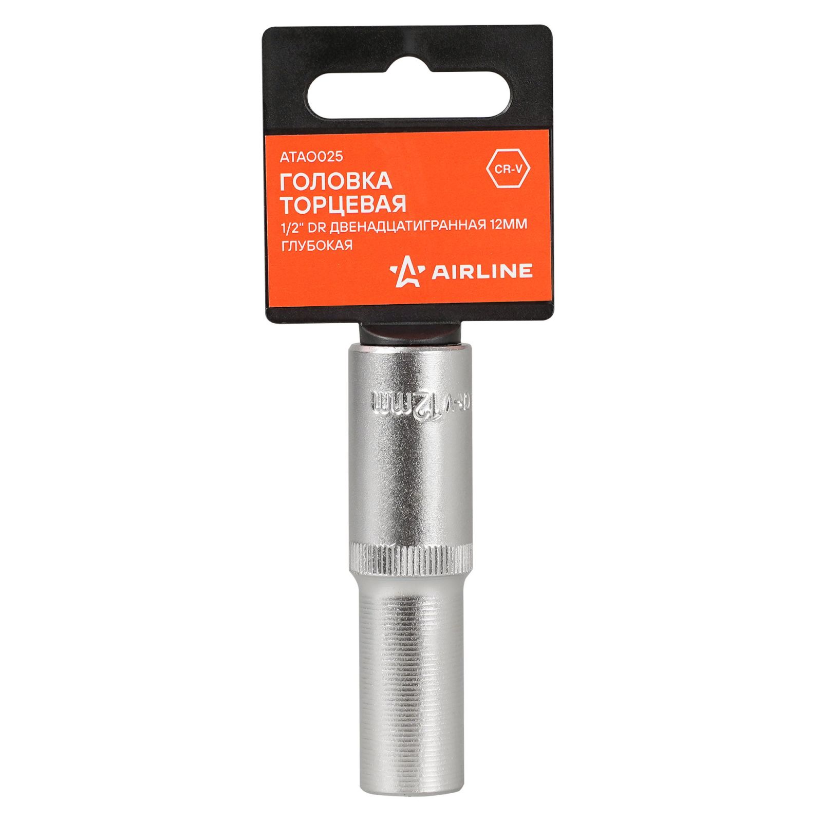 Головка торцевая 1/2" двенадцатигранная 12мм глубокая, пласт. подвес (ATAO025)
