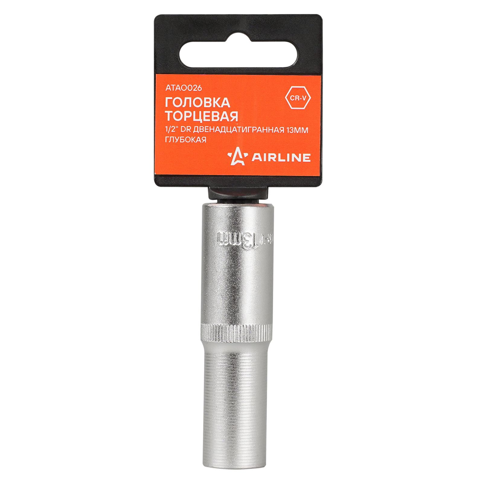Головка торцевая 1/2" двенадцатигранная 13мм глубокая, пласт. подвес (ATAO026)