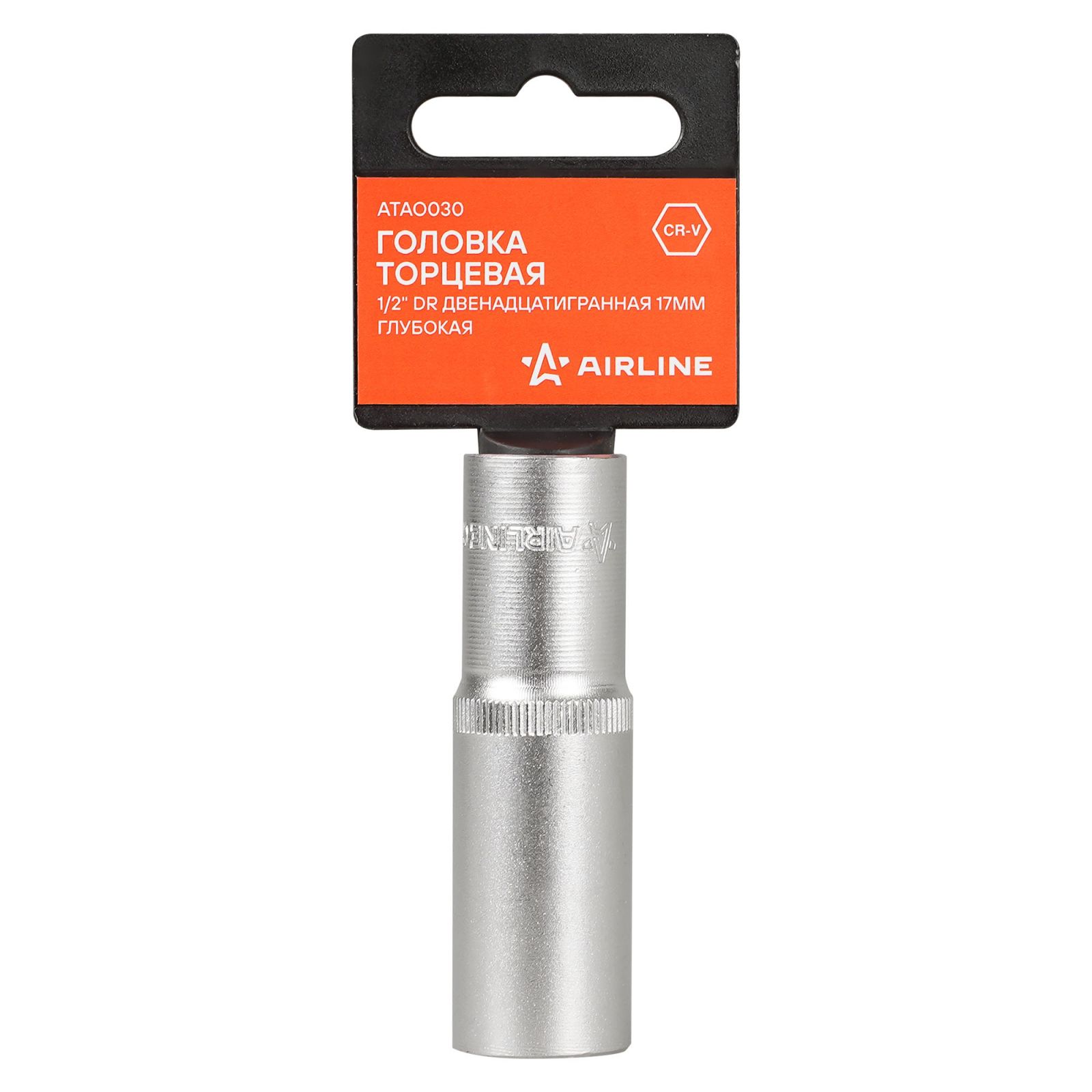 Головка торцевая 1/2" двенадцатигранная 17мм глубокая, пласт. подвес (ATAO030)