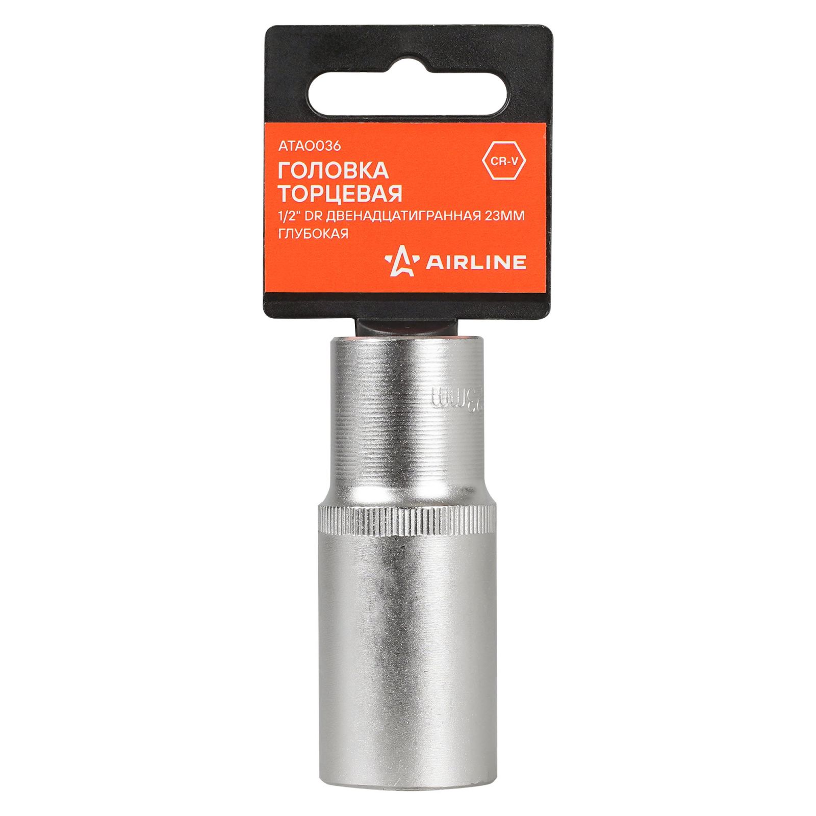 Головка торцевая 1/2" двенадцатигранная 23мм глубокая, пласт. подвес (ATAO036)