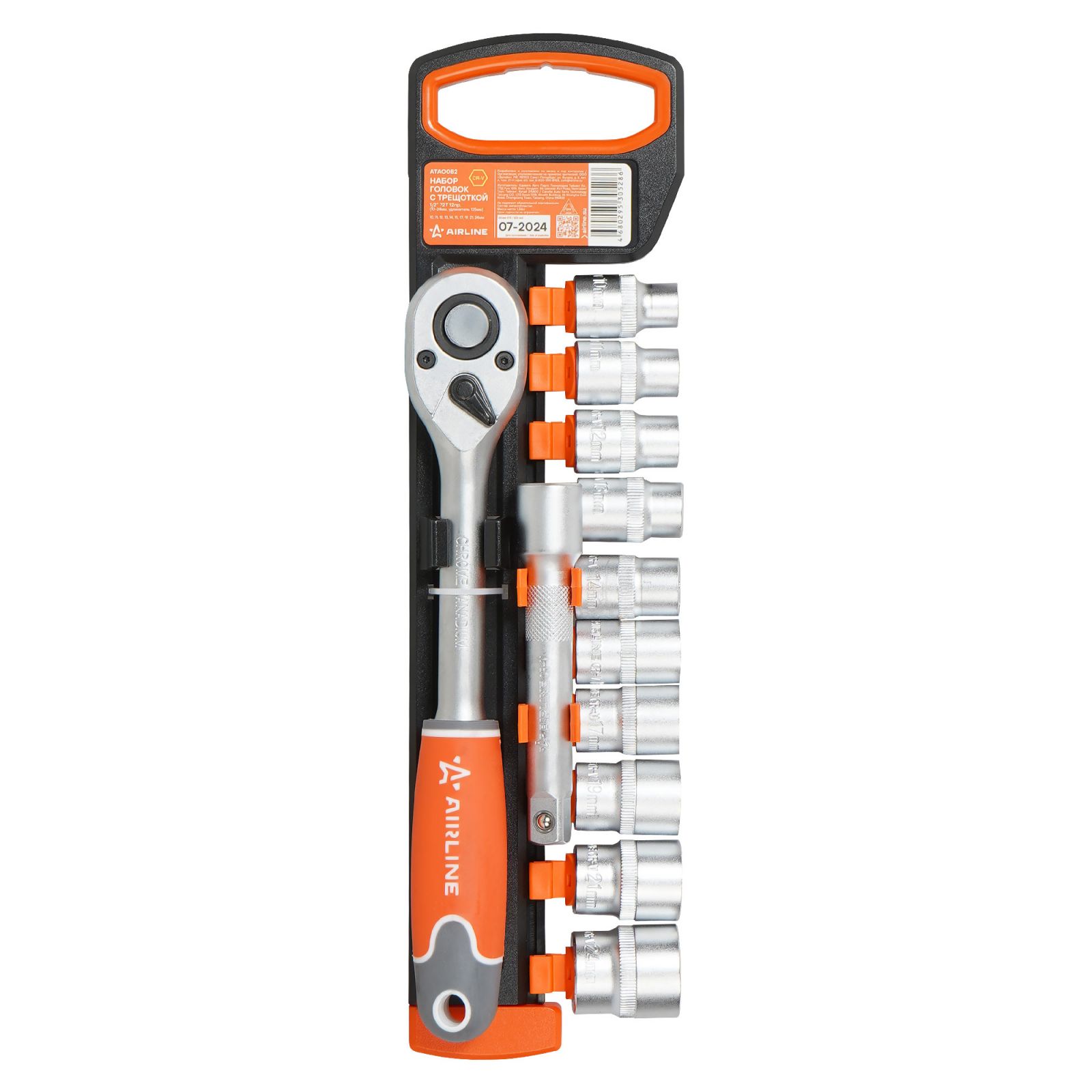 Набор головок 1/2" шестигранных с трещоткой 72Т 12пр. (10-24мм, удлинитель 125мм) (ATAO082)
