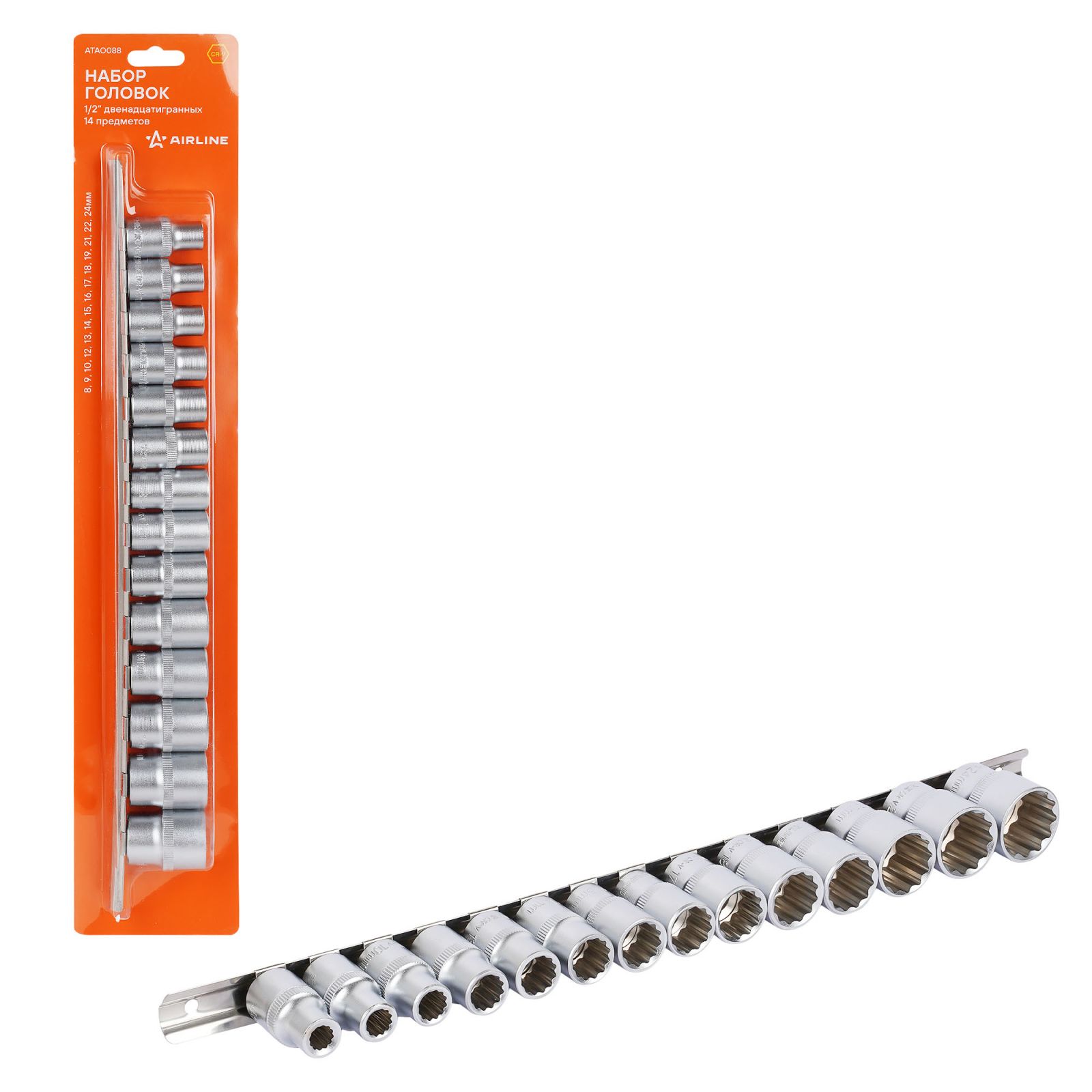 Набор головок 1/2" двенадцатигранных 14пр. (8-24мм) (ATAO088)