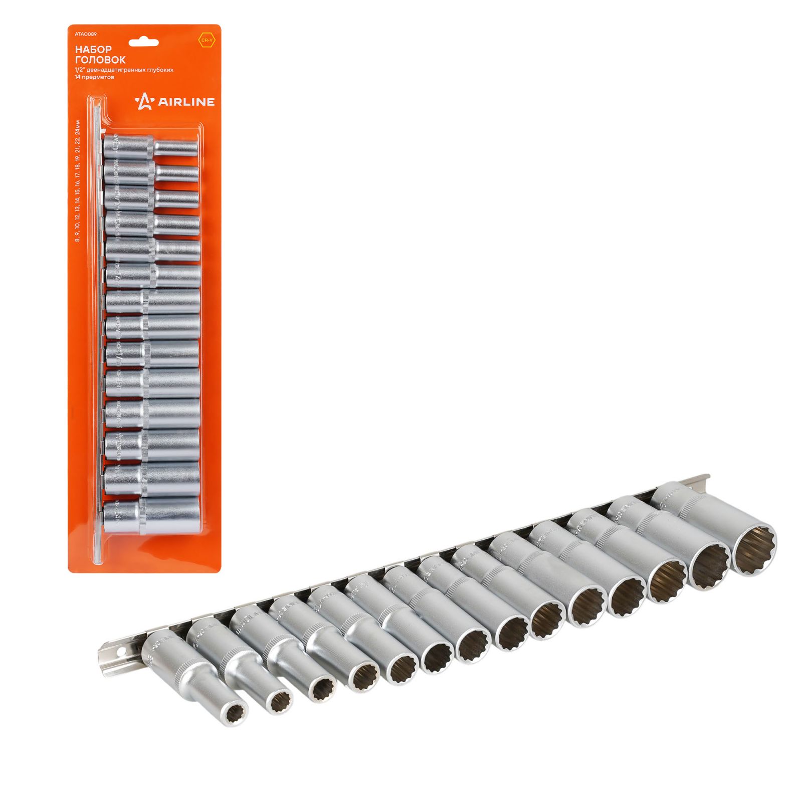 Набор головок 1/2" двенадцатигранных глубоких 14пр. (8-24мм) (ATAO089)