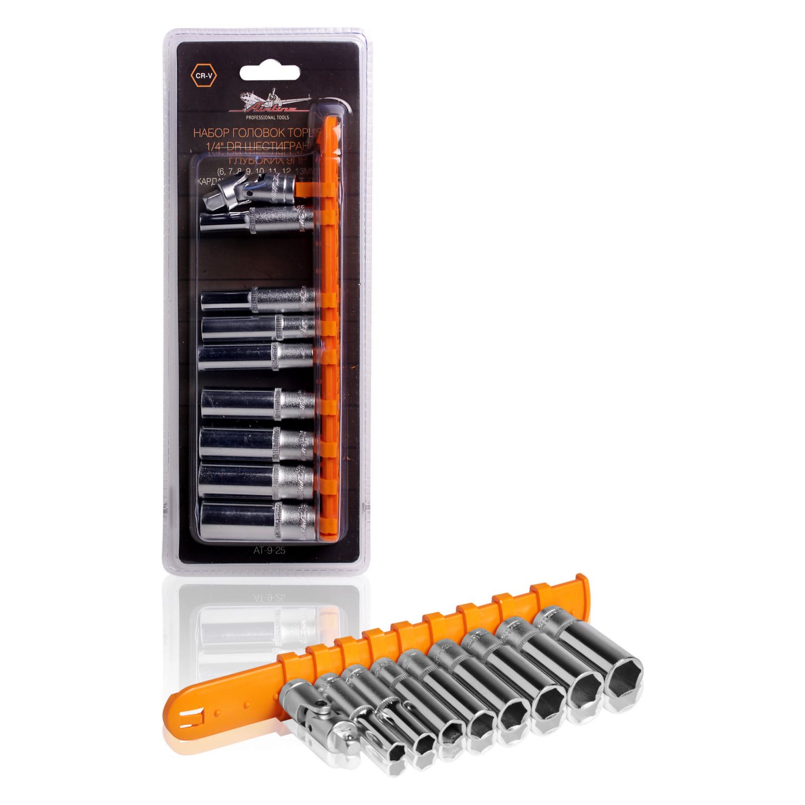 Набор головок 1/4" шестигранных глубоких 9пр. (6-13мм, карданный шарнир) (AT-9-25)