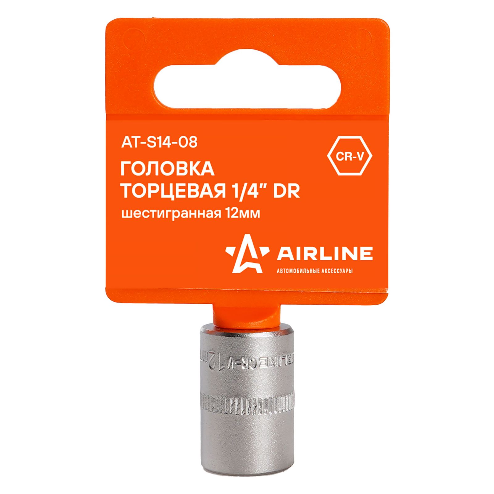 Головка торцевая 1/4" шестигранная 12мм пласт.подвес (AT-S14-08)