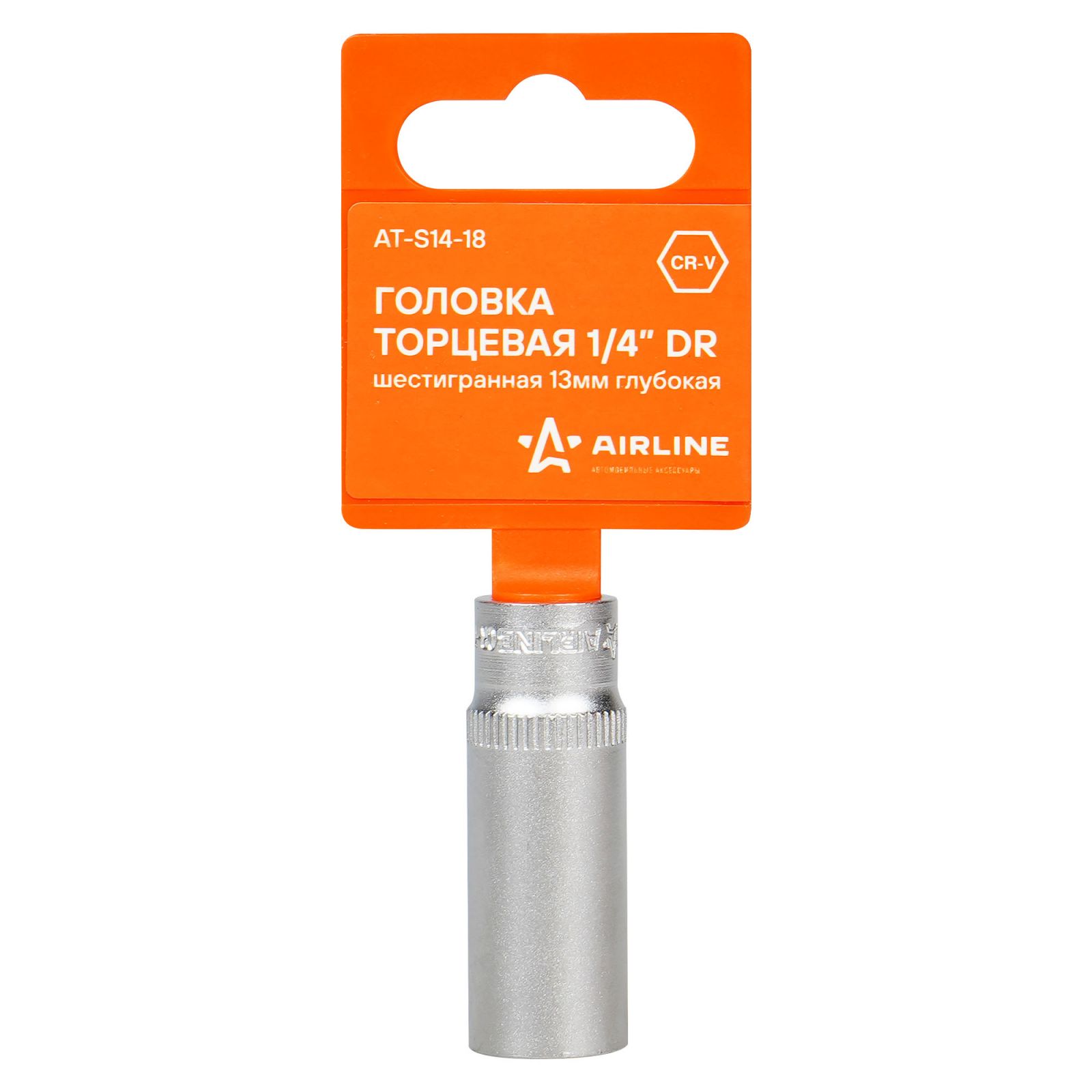 Головка торцевая 1/4" шестигранная 13мм глубокая пласт.подвес (AT-S14-18)