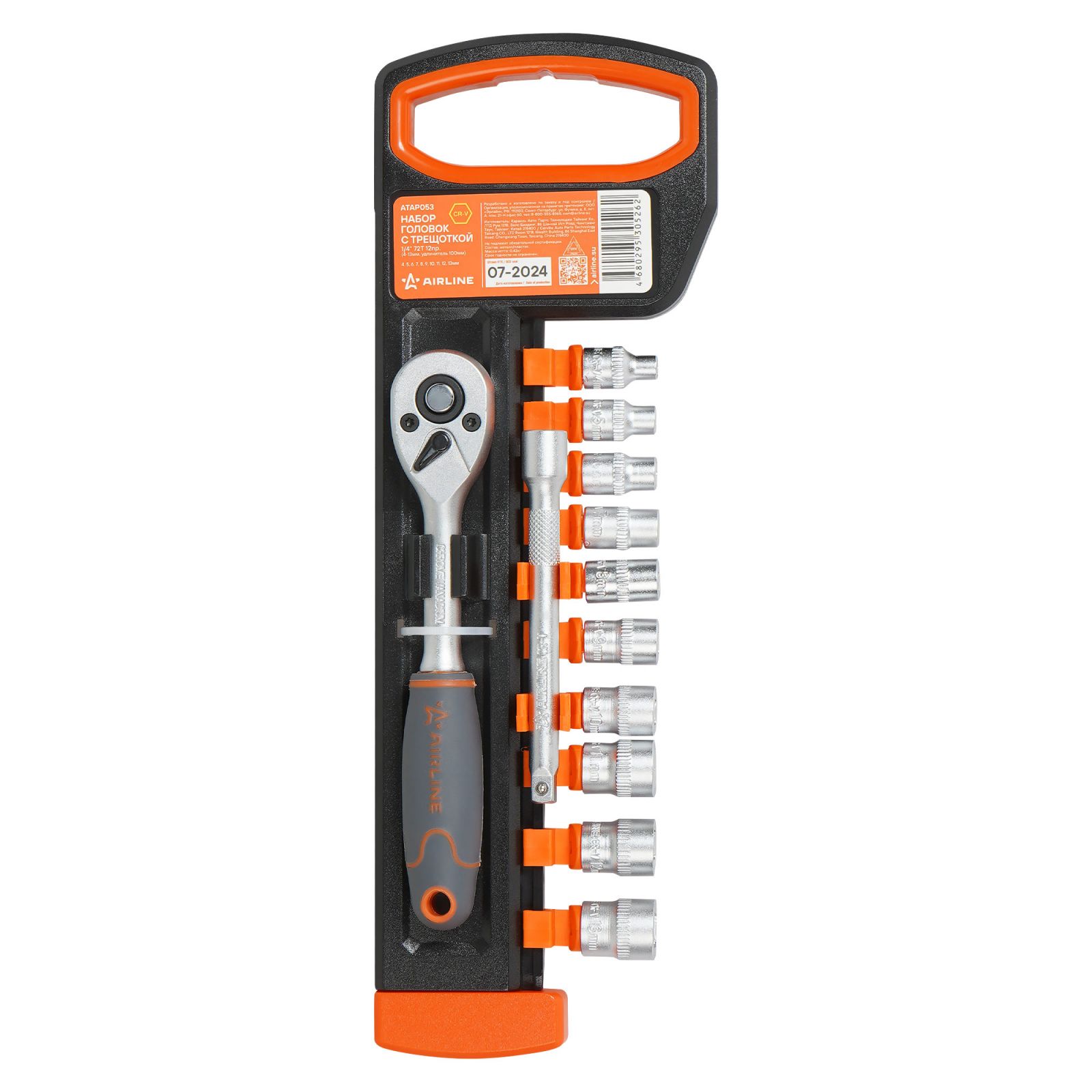 Набор головок 1/4" с трещоткой 72Т 12пр. (4-13мм, удлинитель 100мм) (ATAP053)
