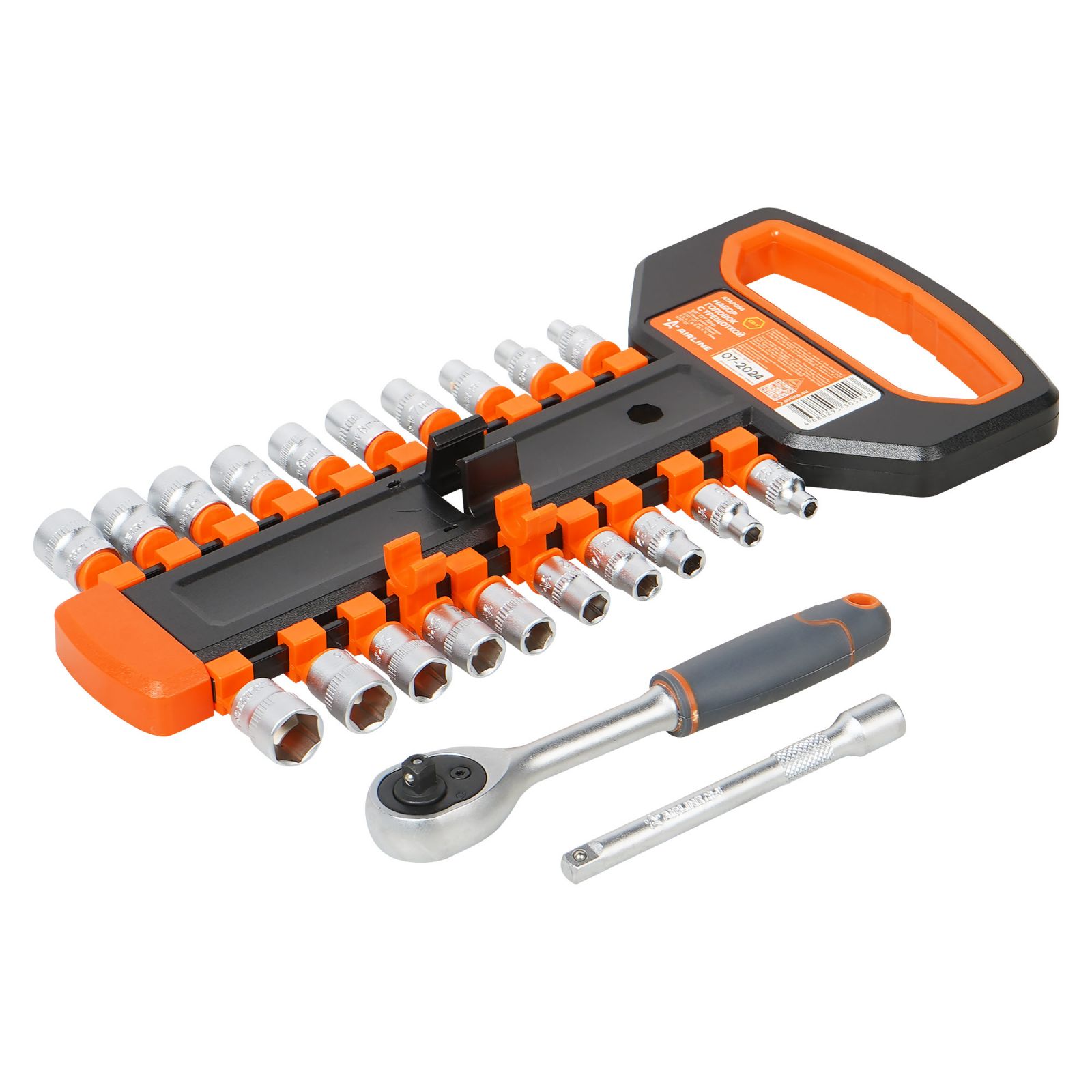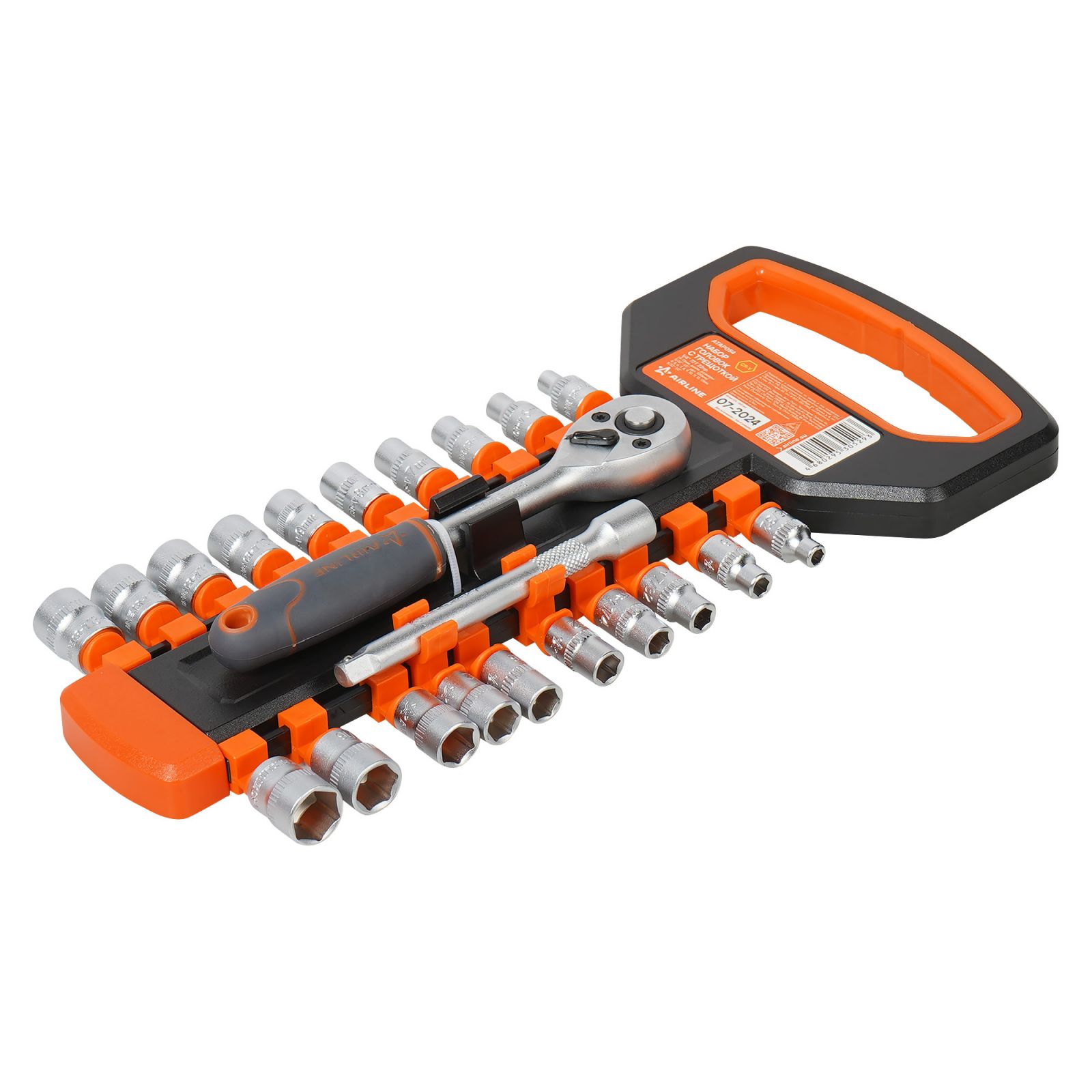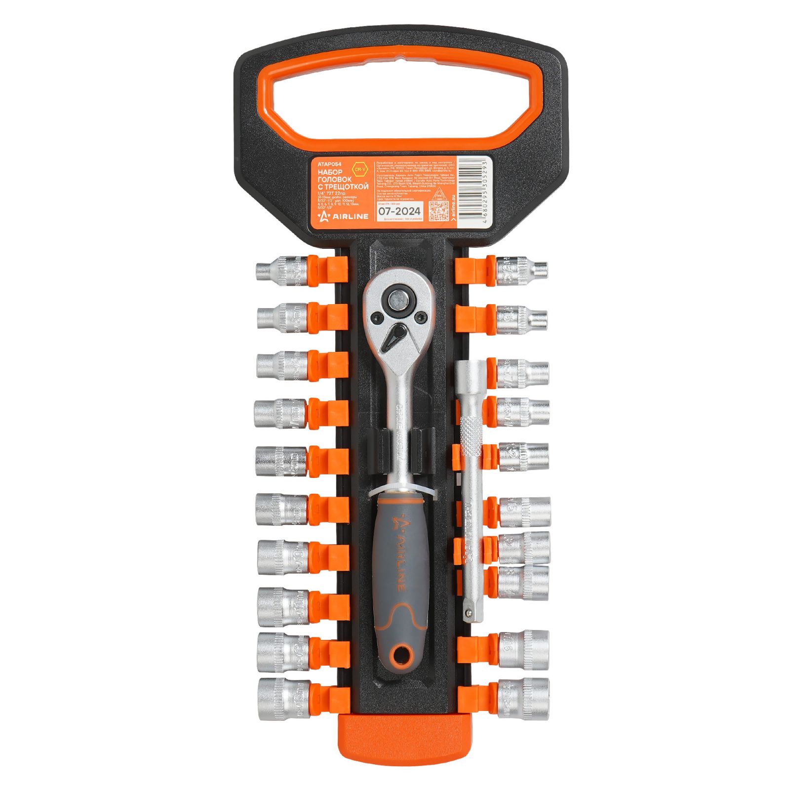 Набор головок 1/4" с трещоткой 72Т 22пр. (4-13мм, дюйм. размеры 5/32"-1/2", удл. 100мм) (ATAP054)