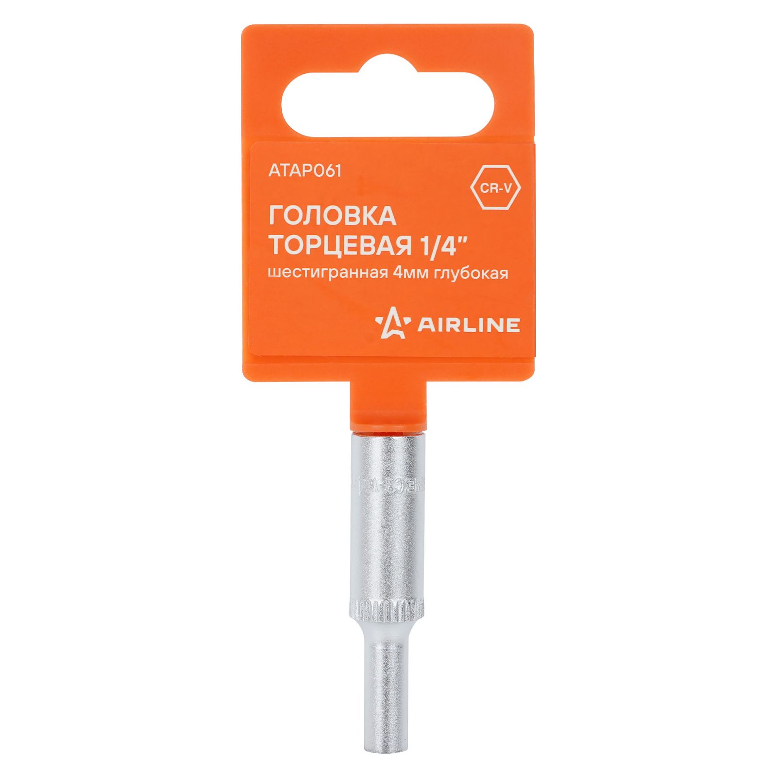 Головка торцевая 1/4" шестигранная 4мм глубокая, пласт.подвес (ATAP061)
