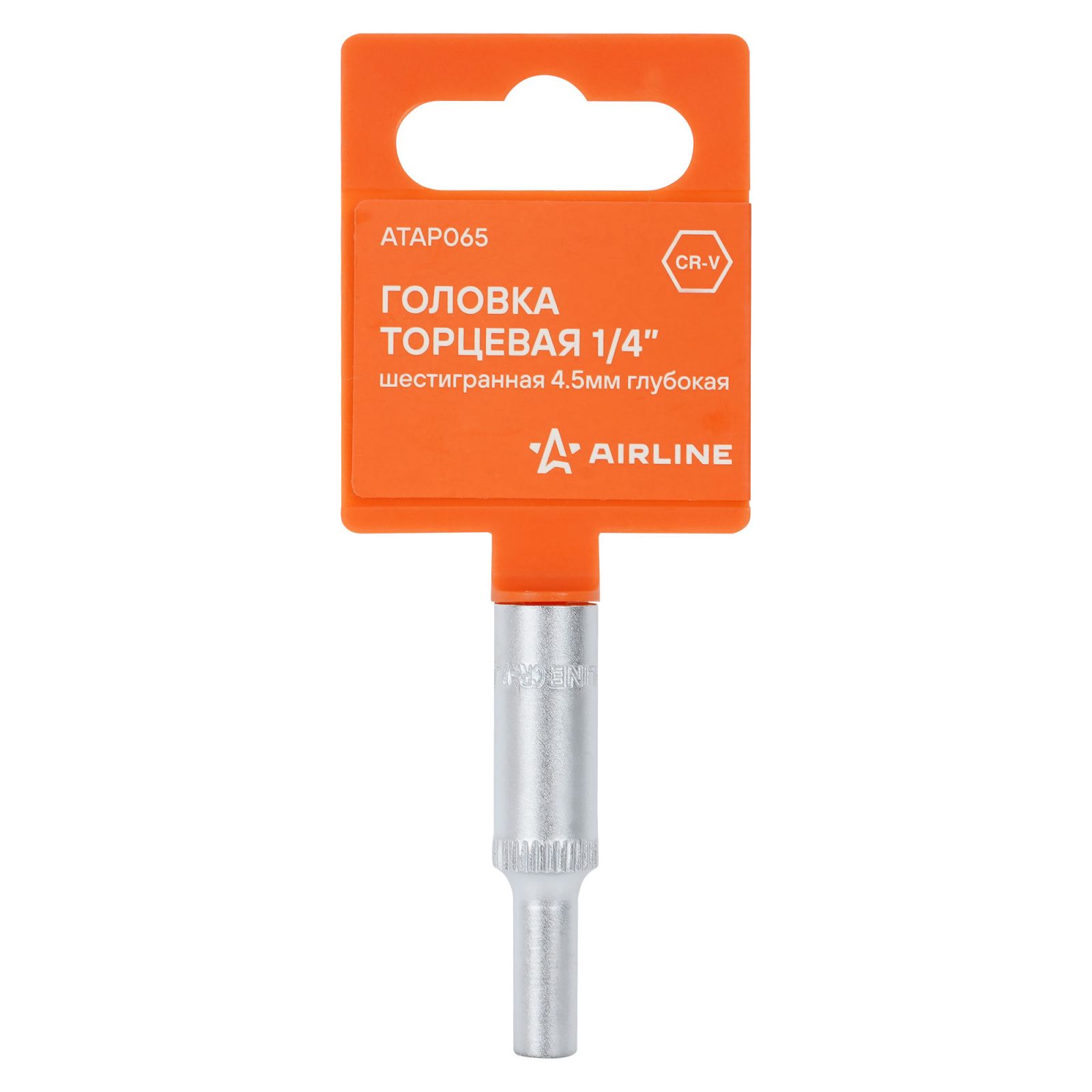 Головка торцевая 1/4" шестигранная 4.5мм глубокая, пласт.подвес (ATAP065)