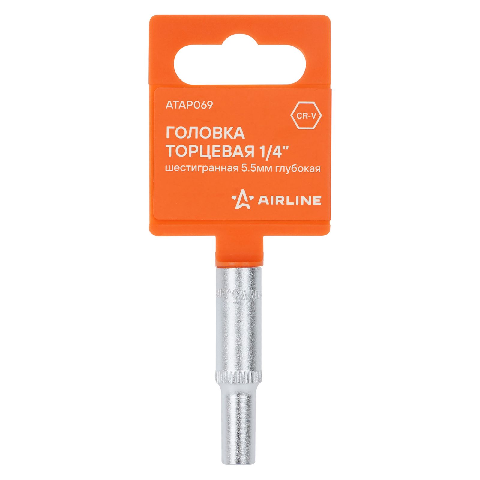 Головка торцевая 1/4" шестигранная 5.5мм глубокая, пласт.подвес (ATAP069)
