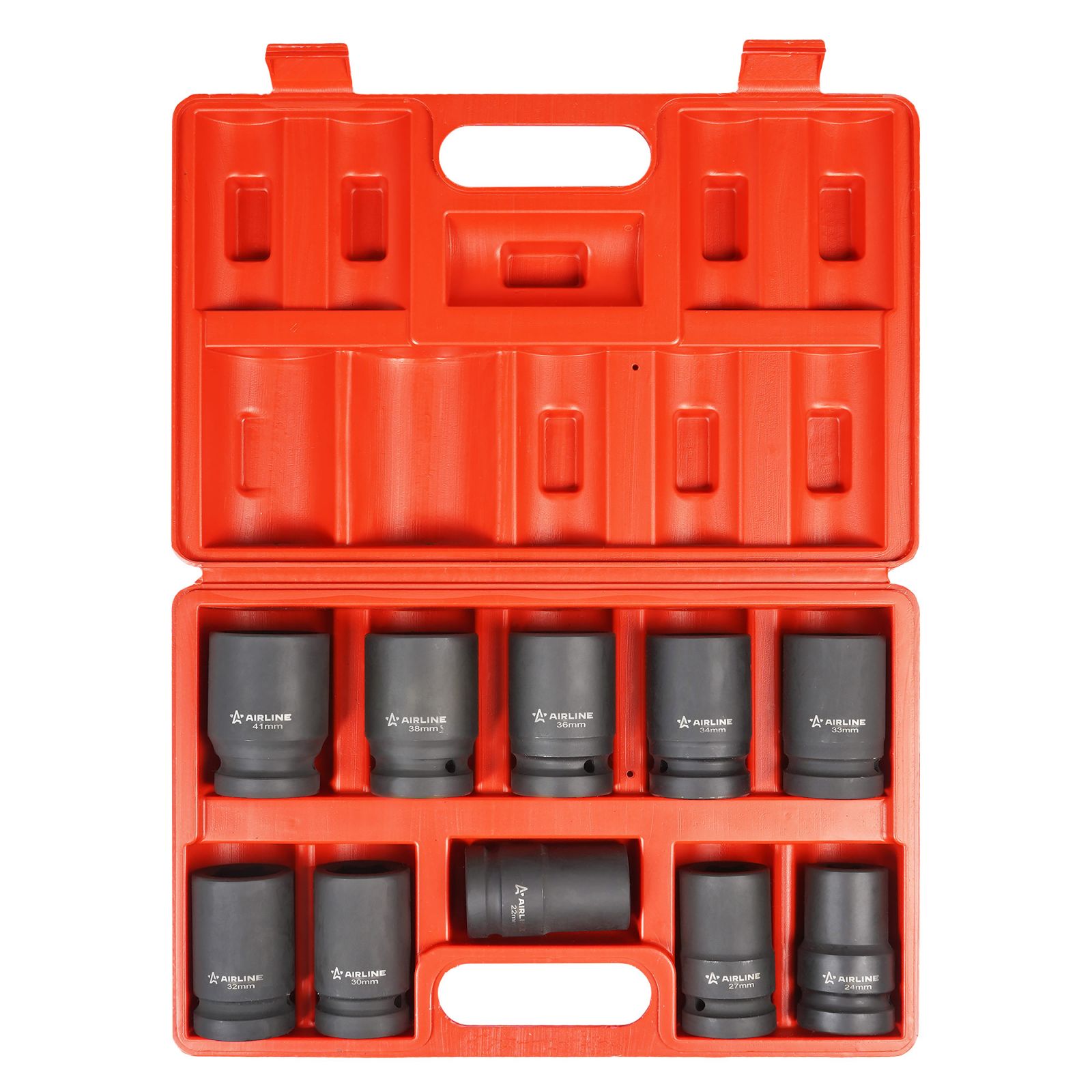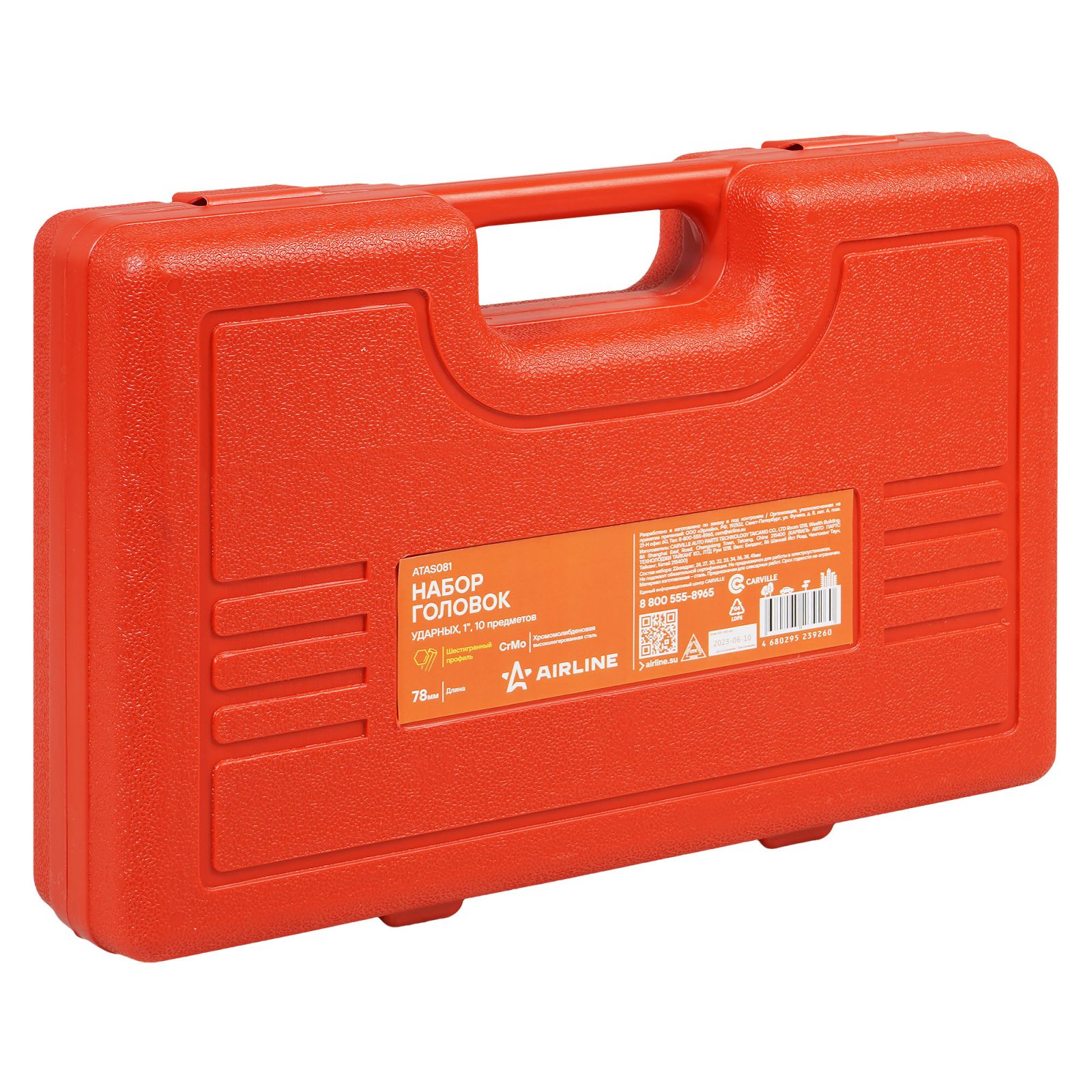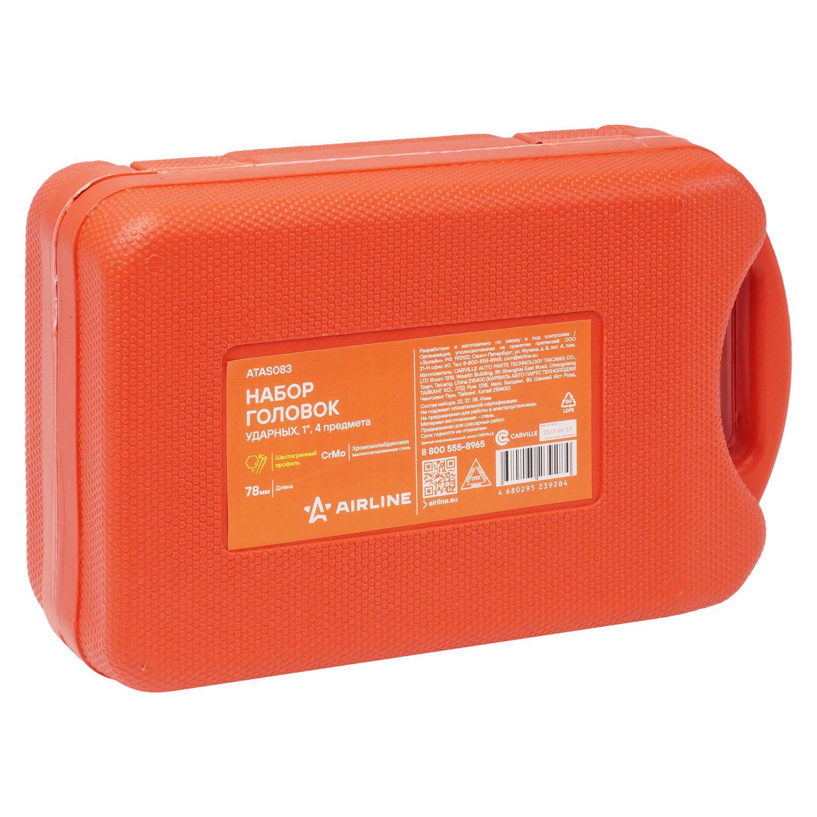 Набор головок ударных 1"DR L=78мм, 10 пр. (22квадрат, 24-41мм) пласт. кейс. (ATAS081)