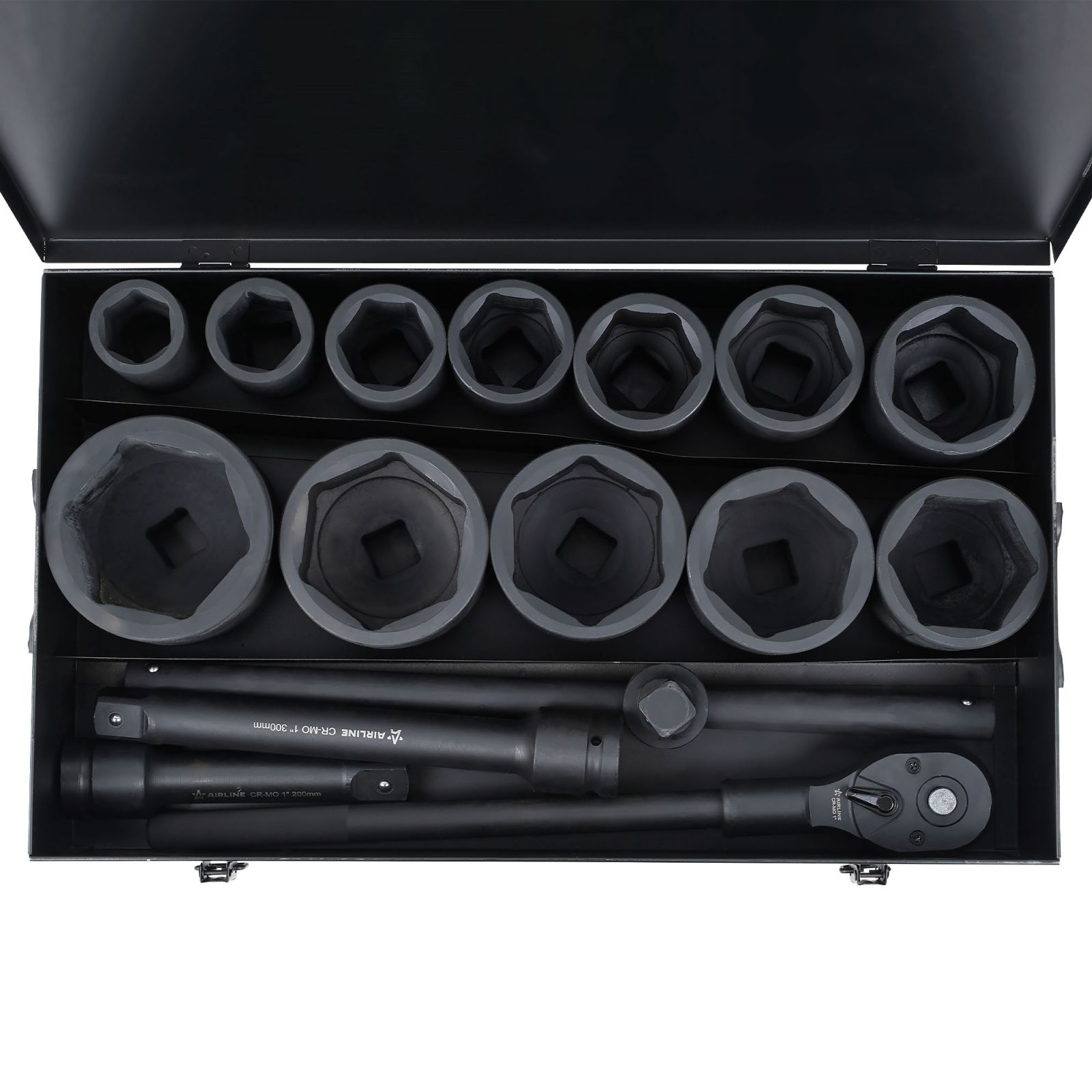 Набор головок ударных 1"DR L=60мм, 15 пр. (22-60мм) металл.кейс (ATAS067)