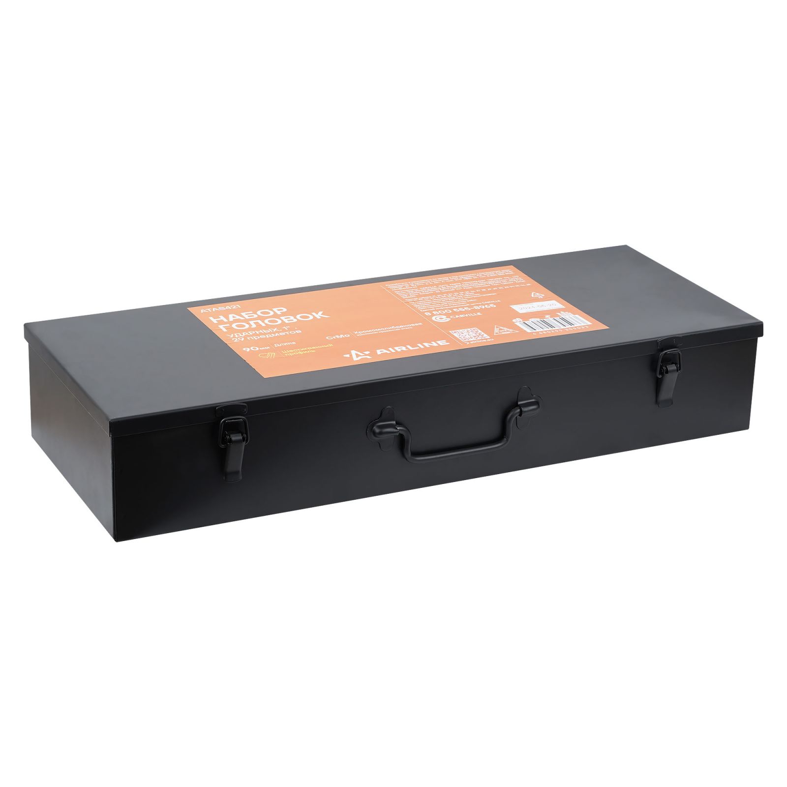 Набор головок ударных 1"DR L=90мм, 29пр. (19-65мм) металл.кейс (ATAS421)