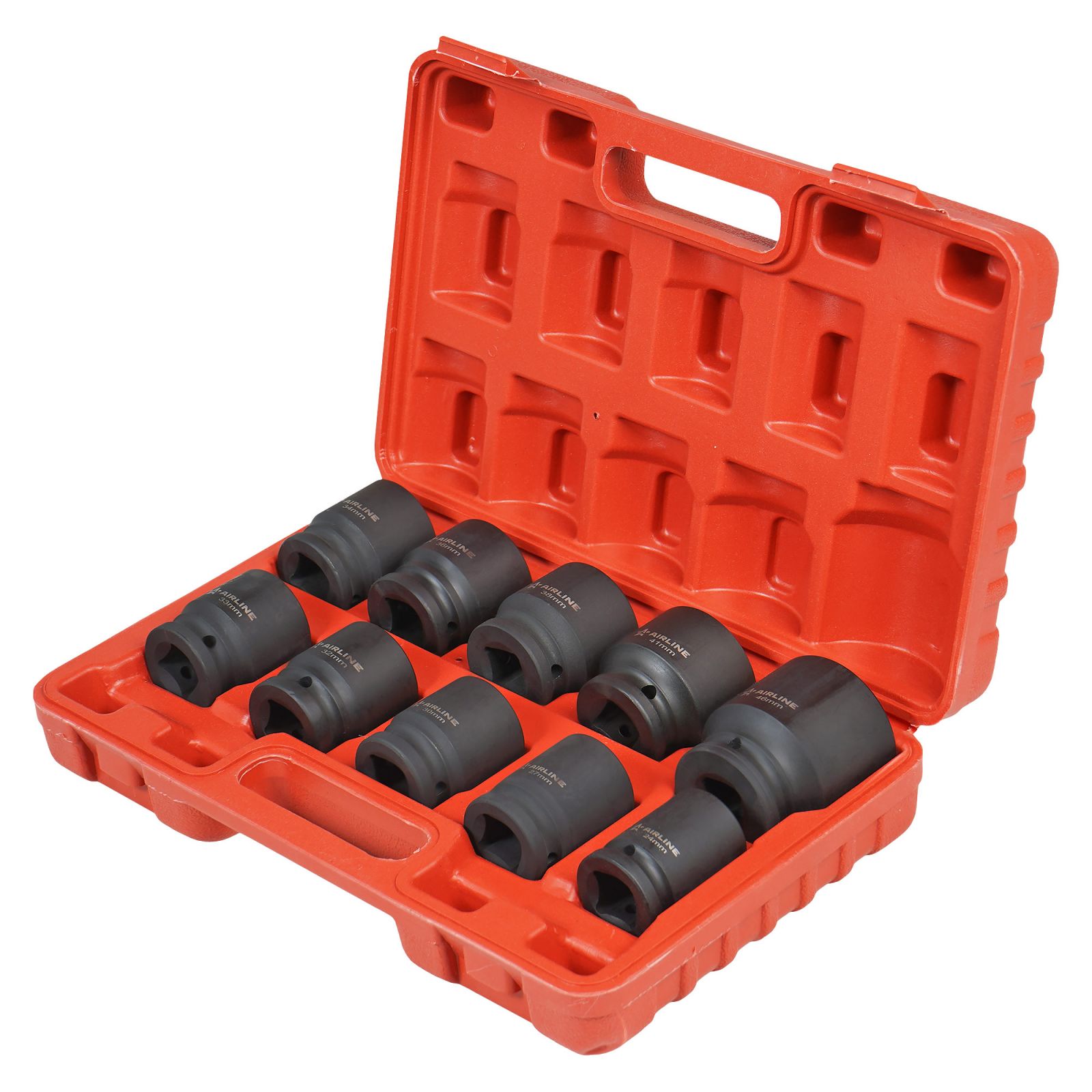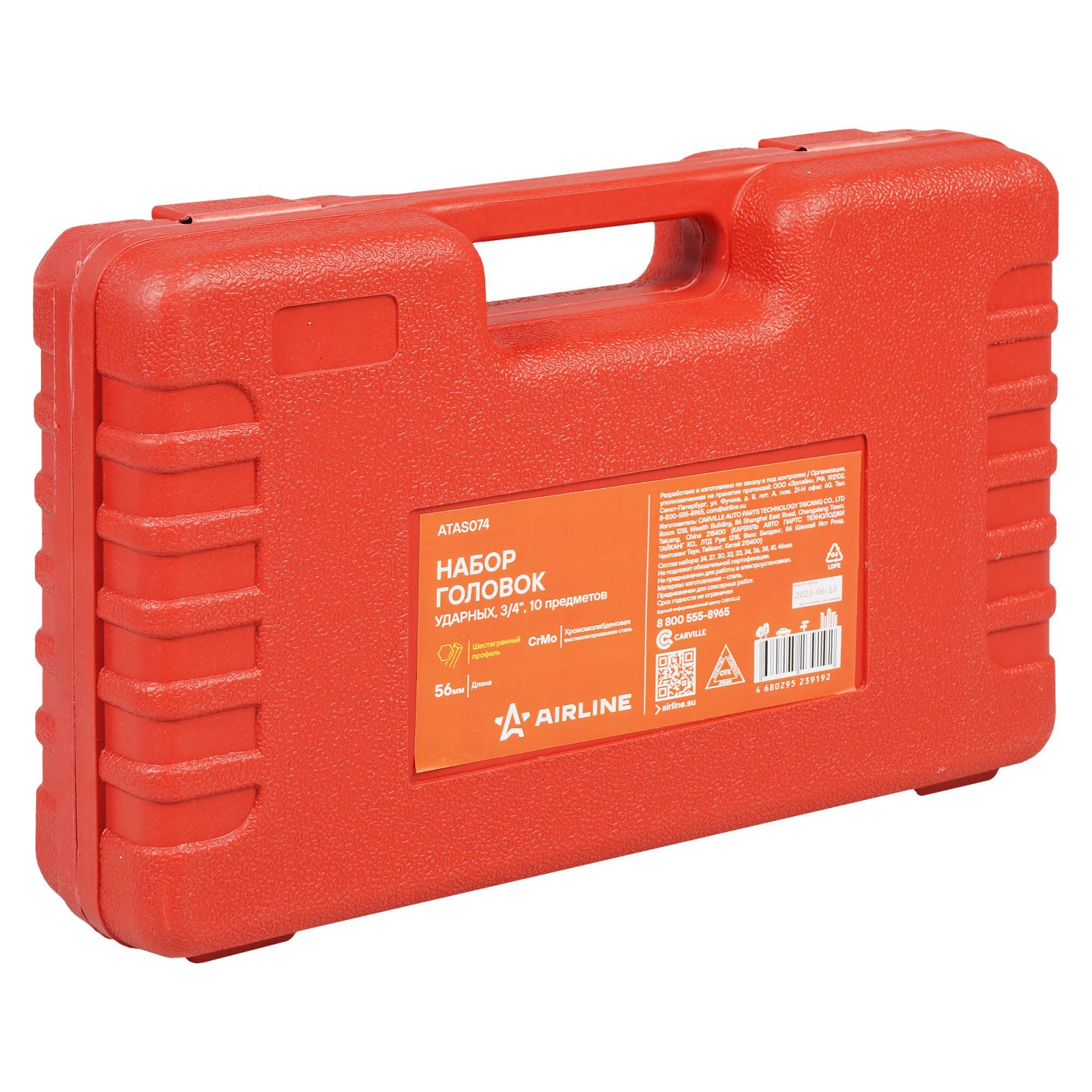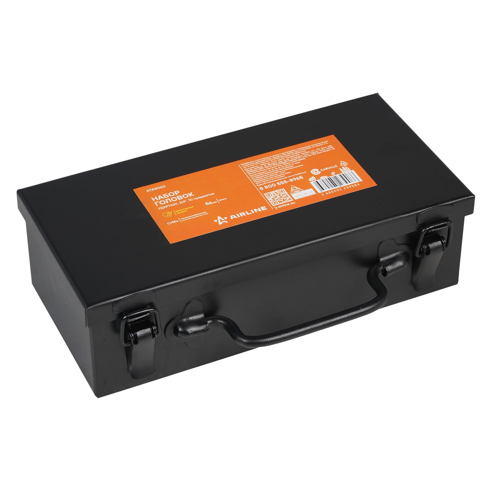 Набор головок ударных 3/4"DR L=56мм, 10пр. (17-46мм) мет. кейс. (ATAS063)