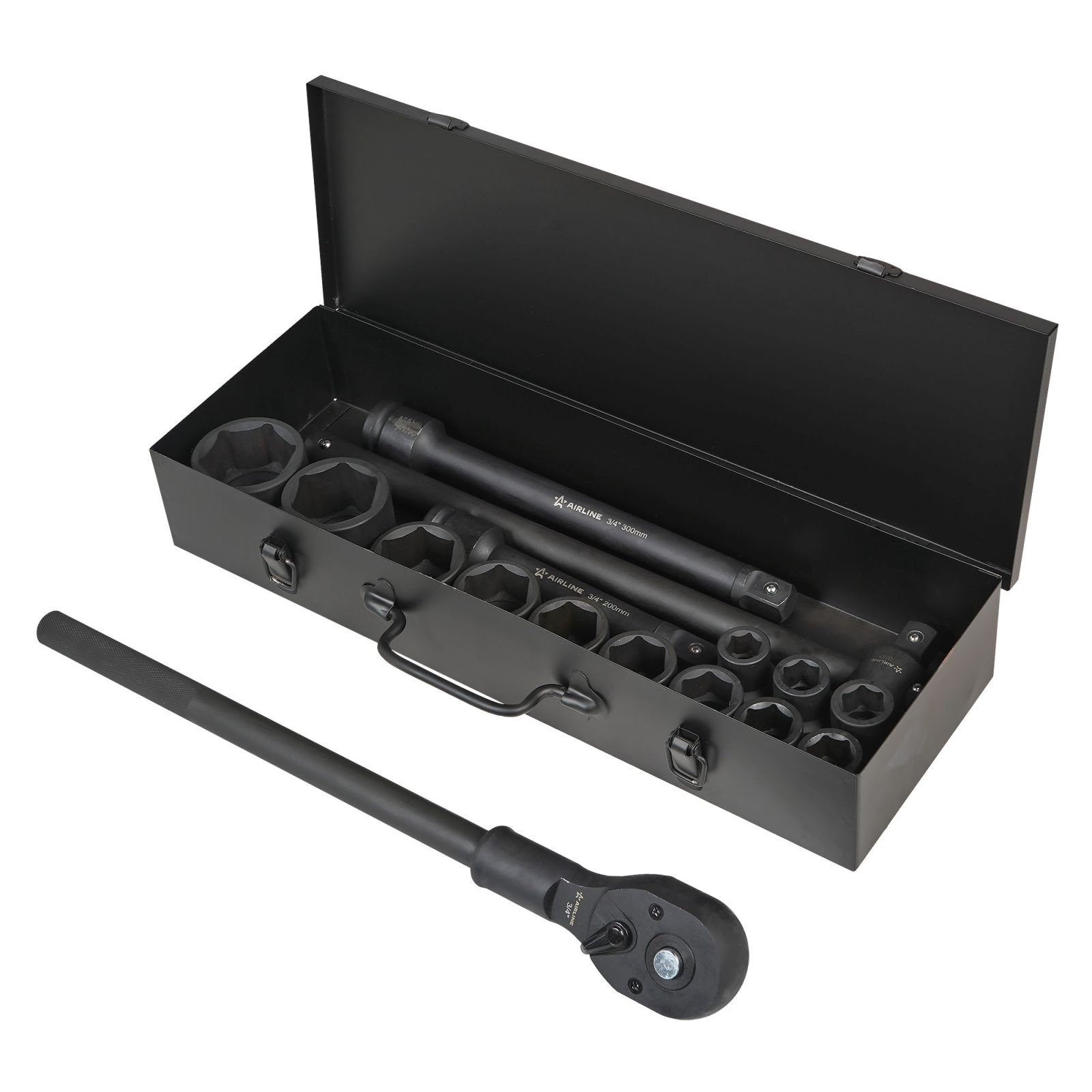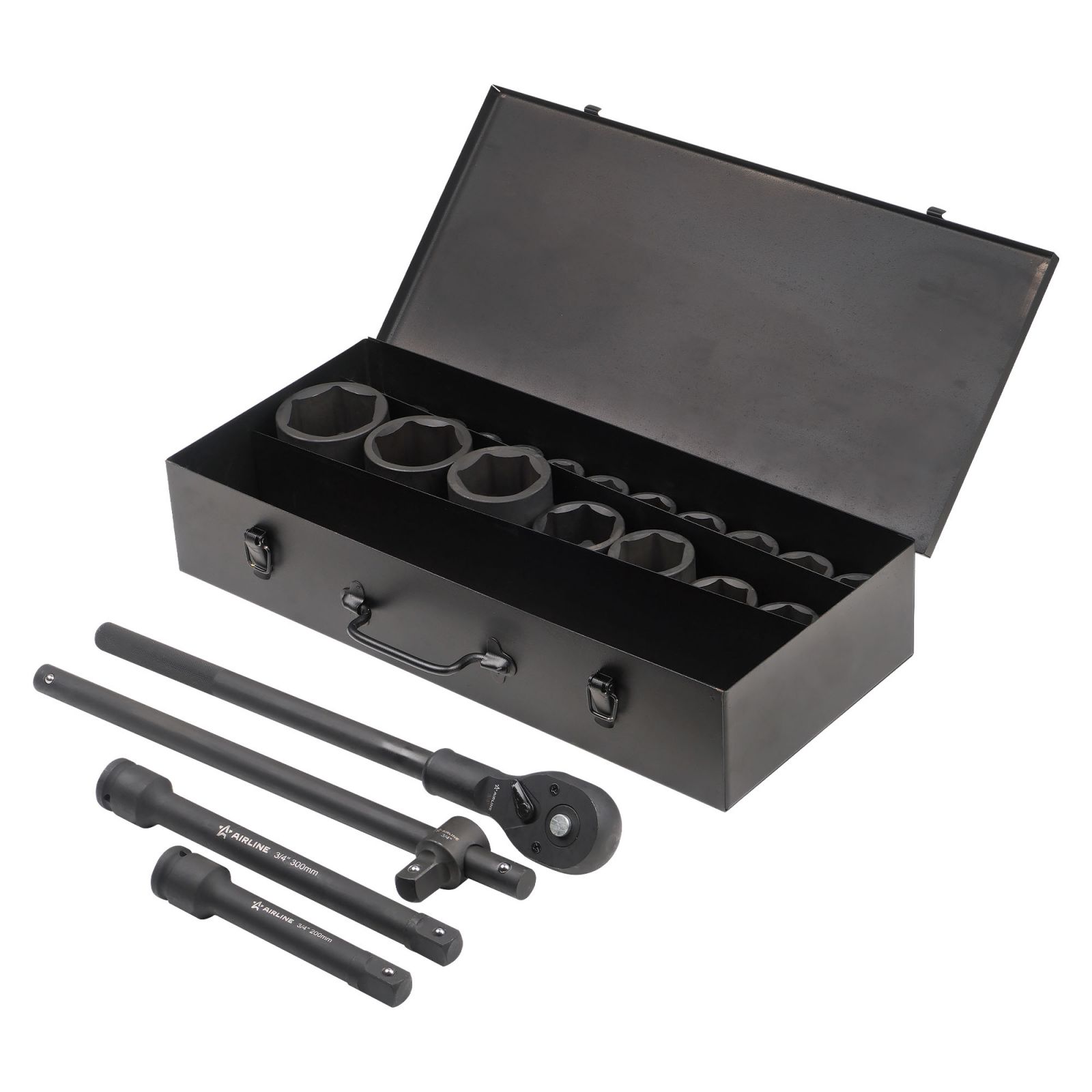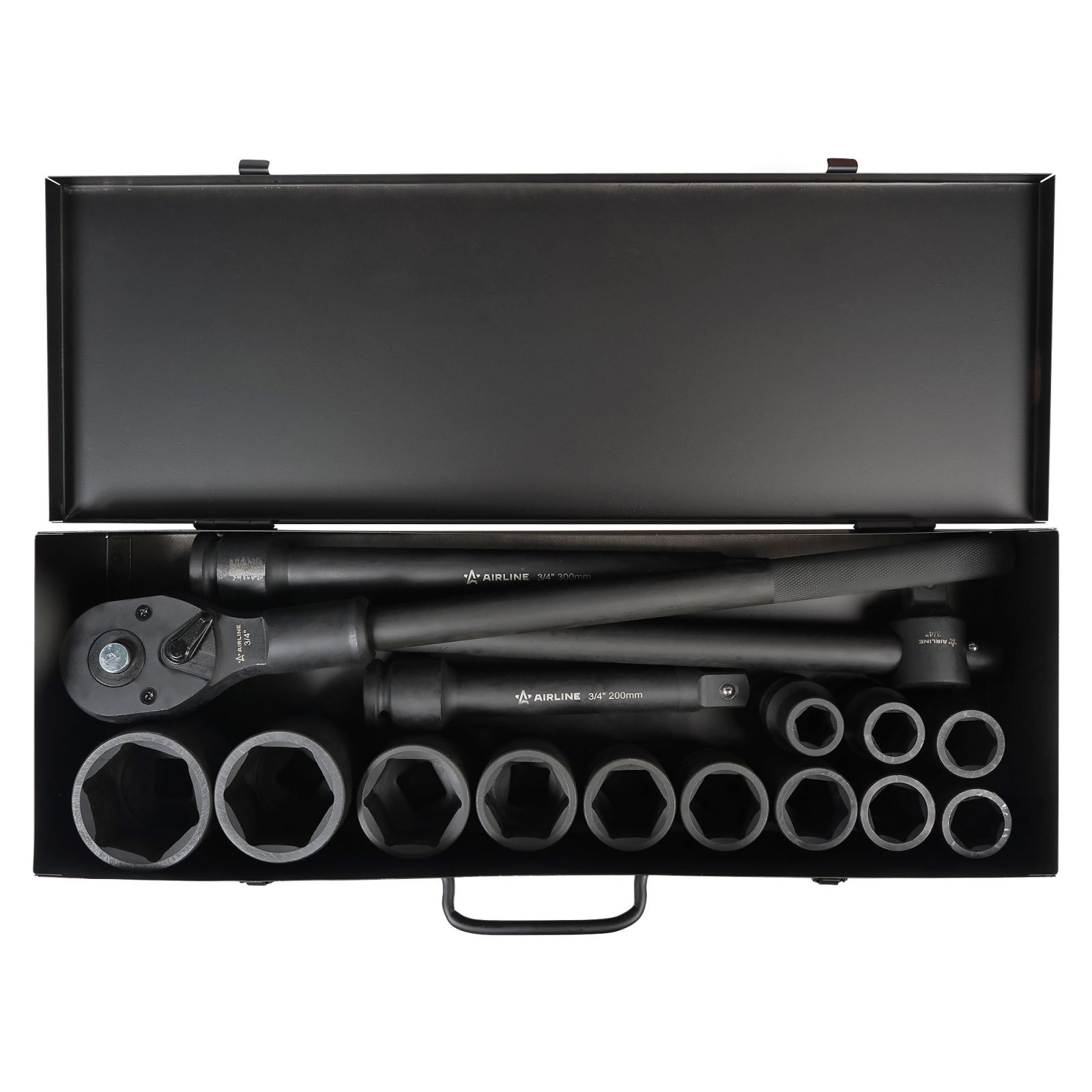 Набор головок ударных 3/4"DR L=90мм, 16пр. (17-50мм) металл. кейс (ATAS045)