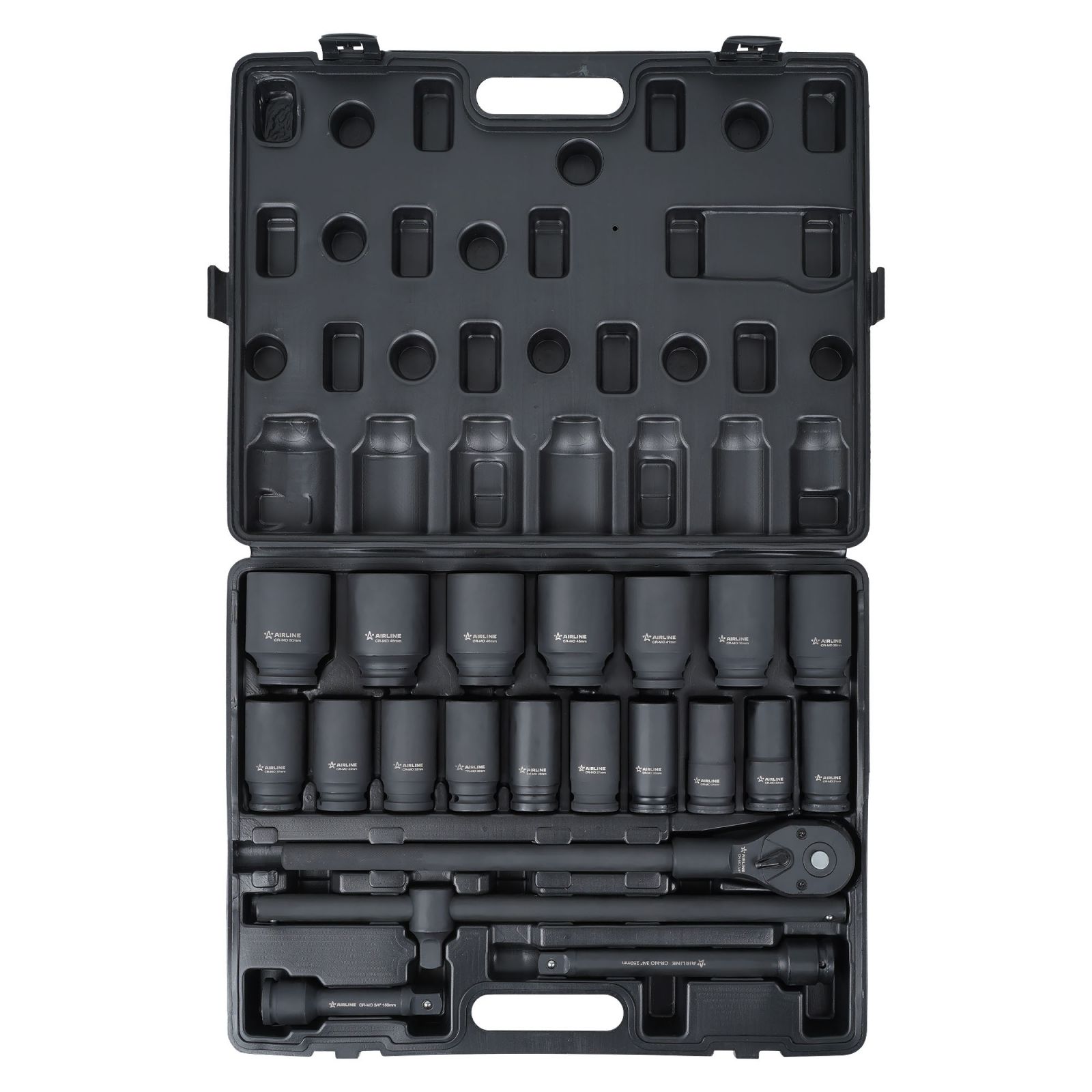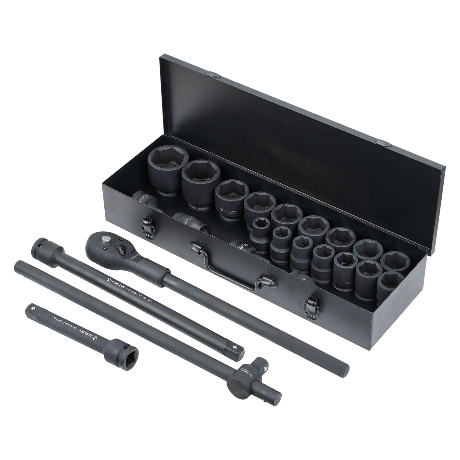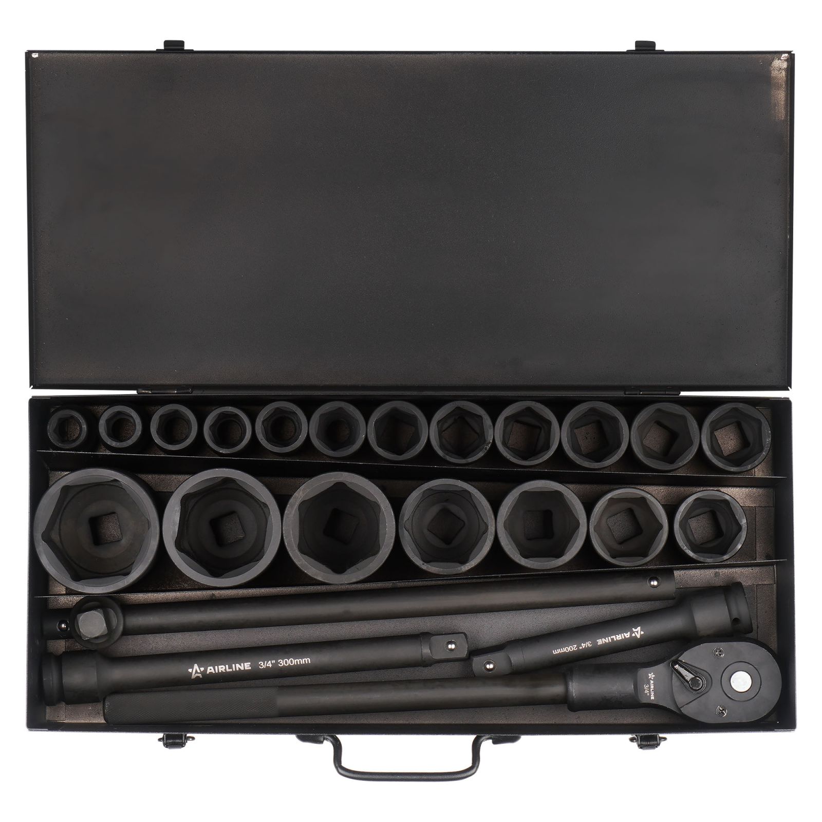 Набор головок ударных 3/4"DR L=56мм, 24пр. (17-50мм) металл.кейс (ATAS414)