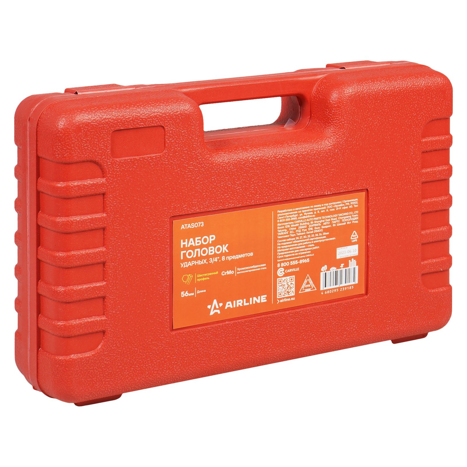 Набор головок ударных 3/4"DR L=56мм, 23пр. (17-65мм) мет. кейс. (ATAS065)