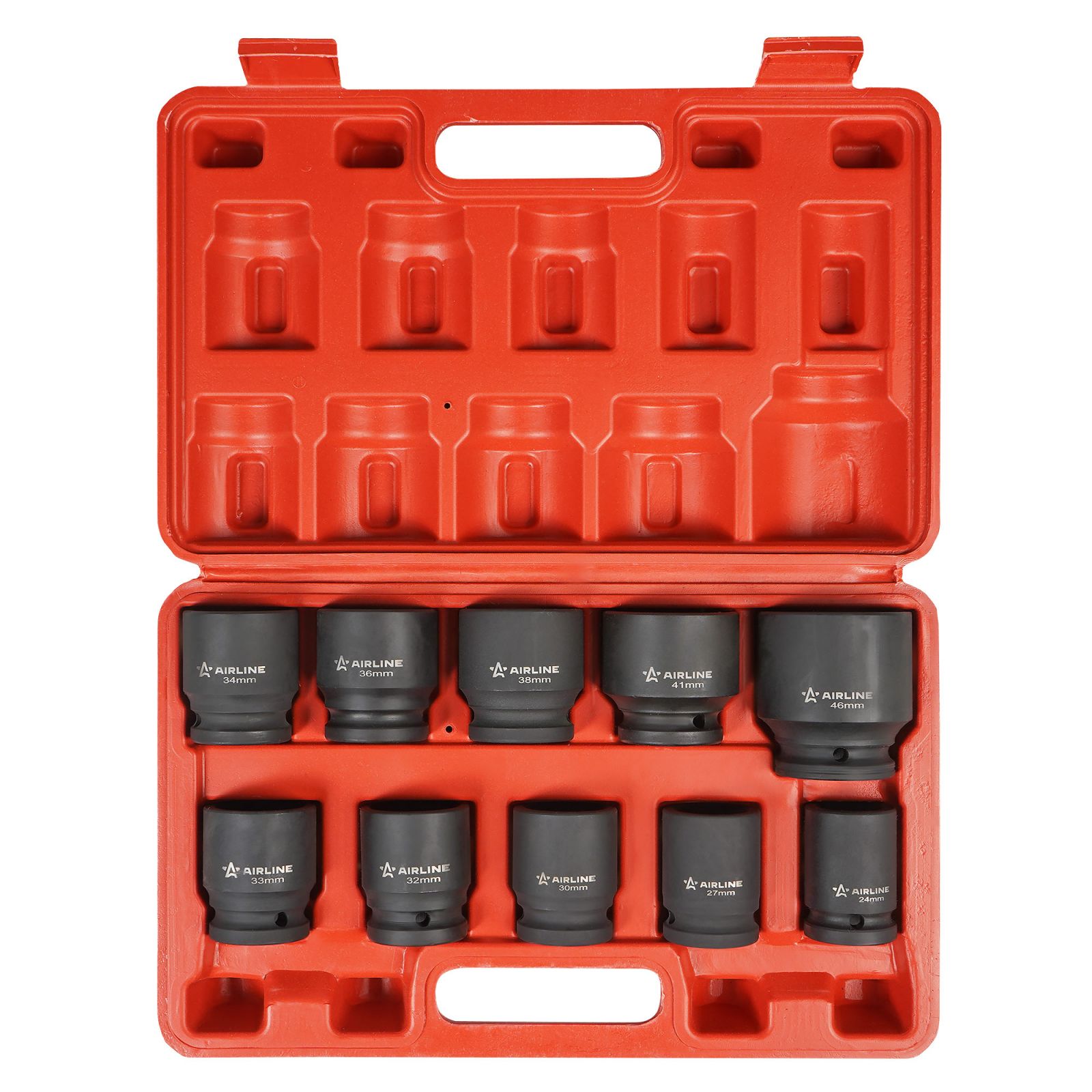 Набор головок ударных 3/4"DR L=56мм, 10пр. (24-46мм) пласт. кейс. (ATAS074)