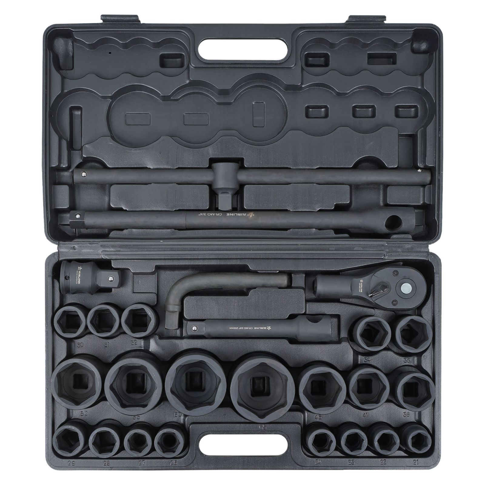 Набор головок ударных 3/4"DR L=90мм, 21пр. (22-50мм) пласт.кейс (ATAS411)