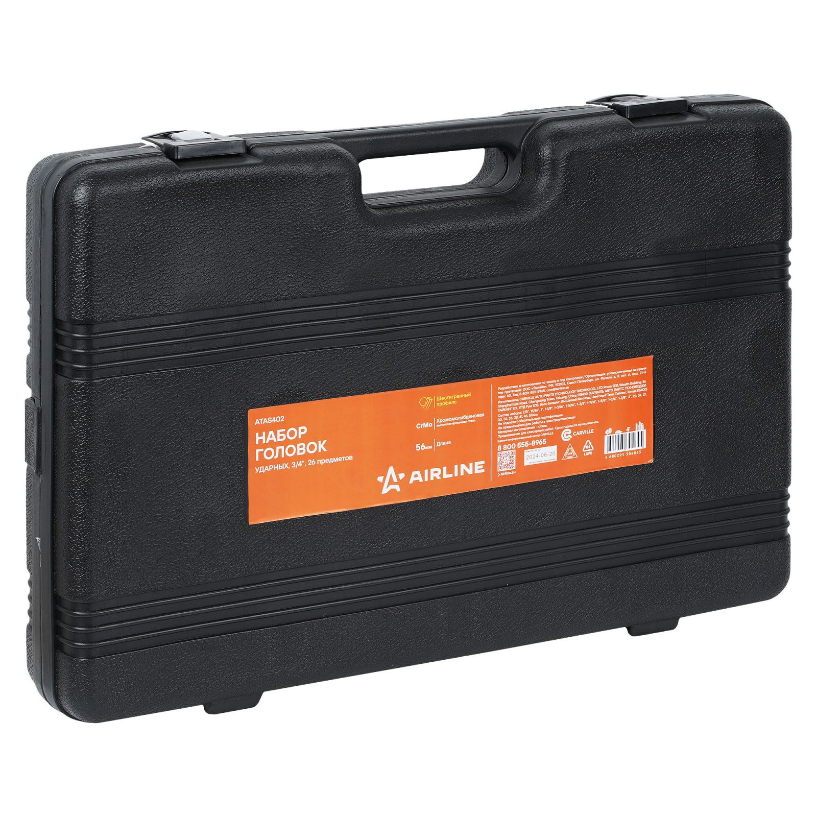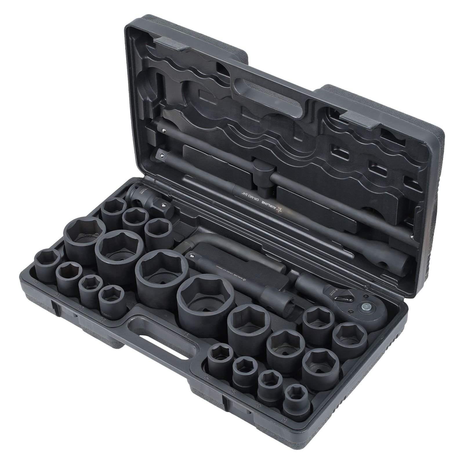 Набор головок ударных 3/4"DR L=56мм, 26пр. (22-50мм, дюйм. размеры 7/8"-2") пласт.кейс (ATAS402)