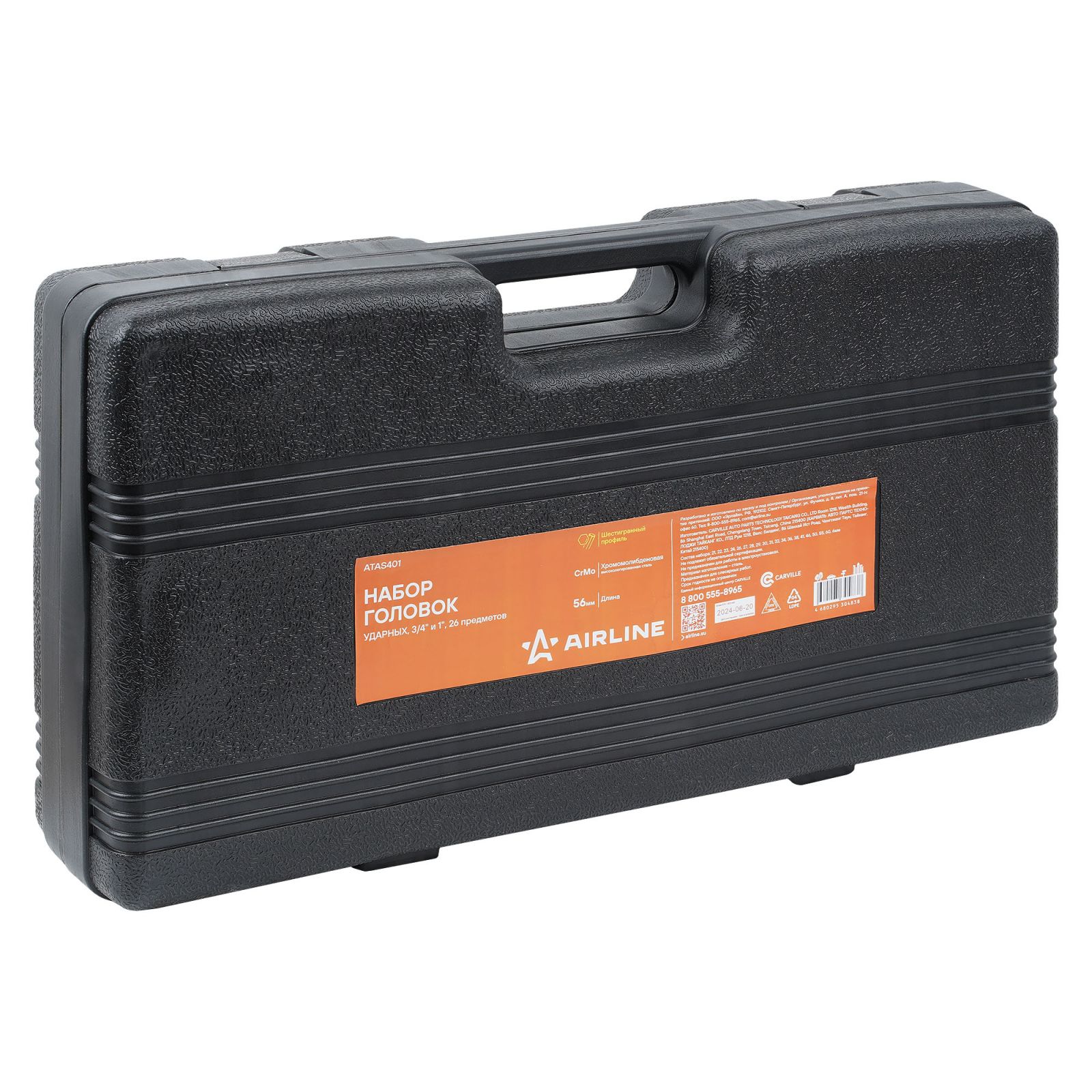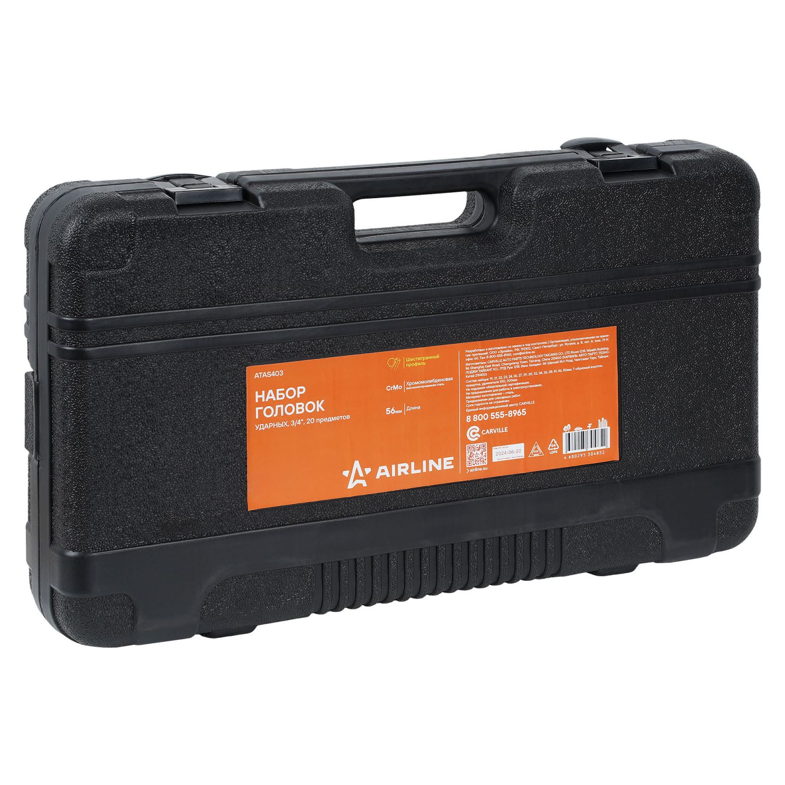 Набор головок ударных 3/4"DR L=56мм, 20пр. (19-50мм) пласт.кейс (ATAS403)