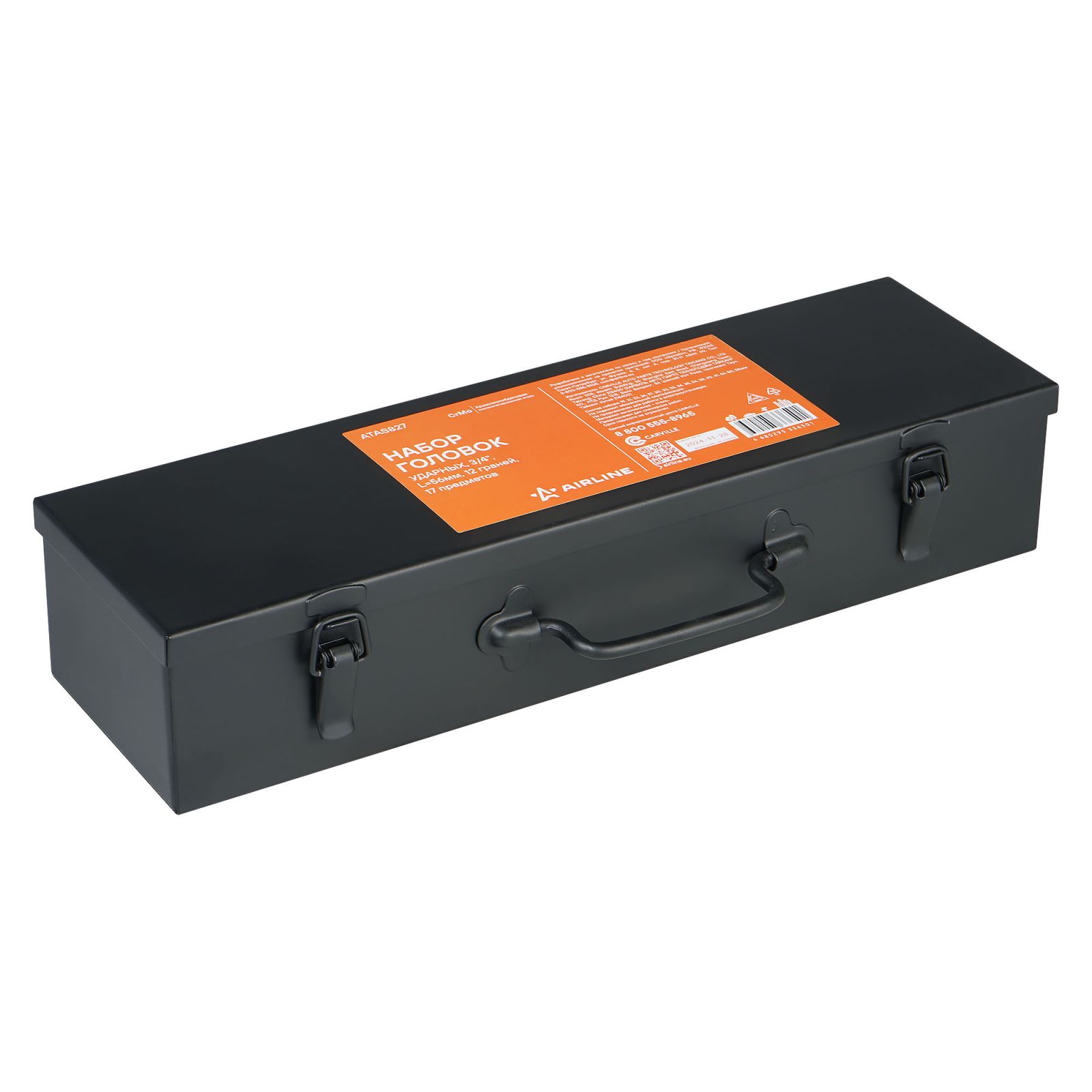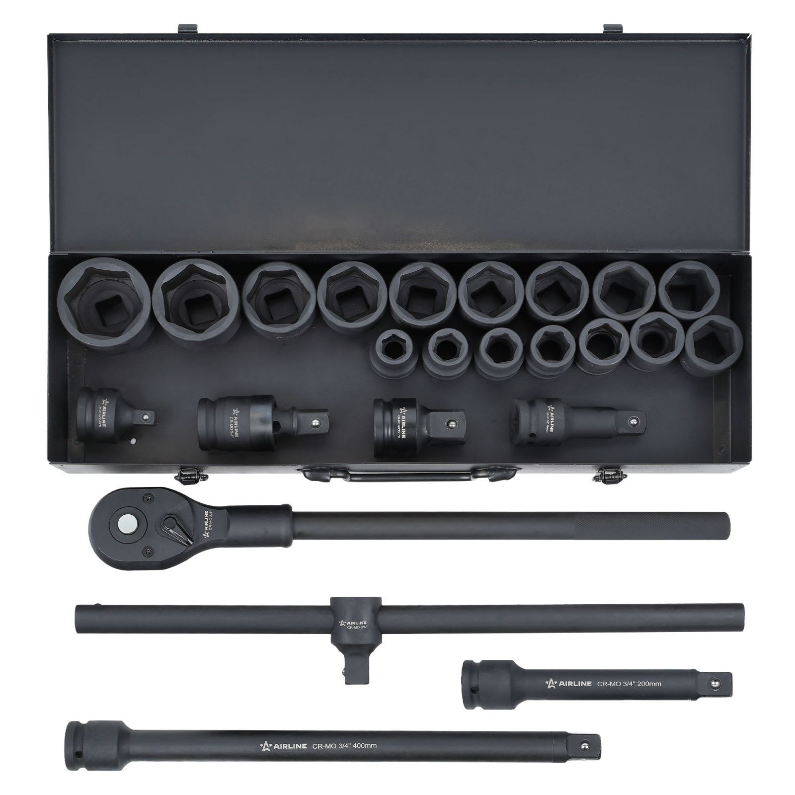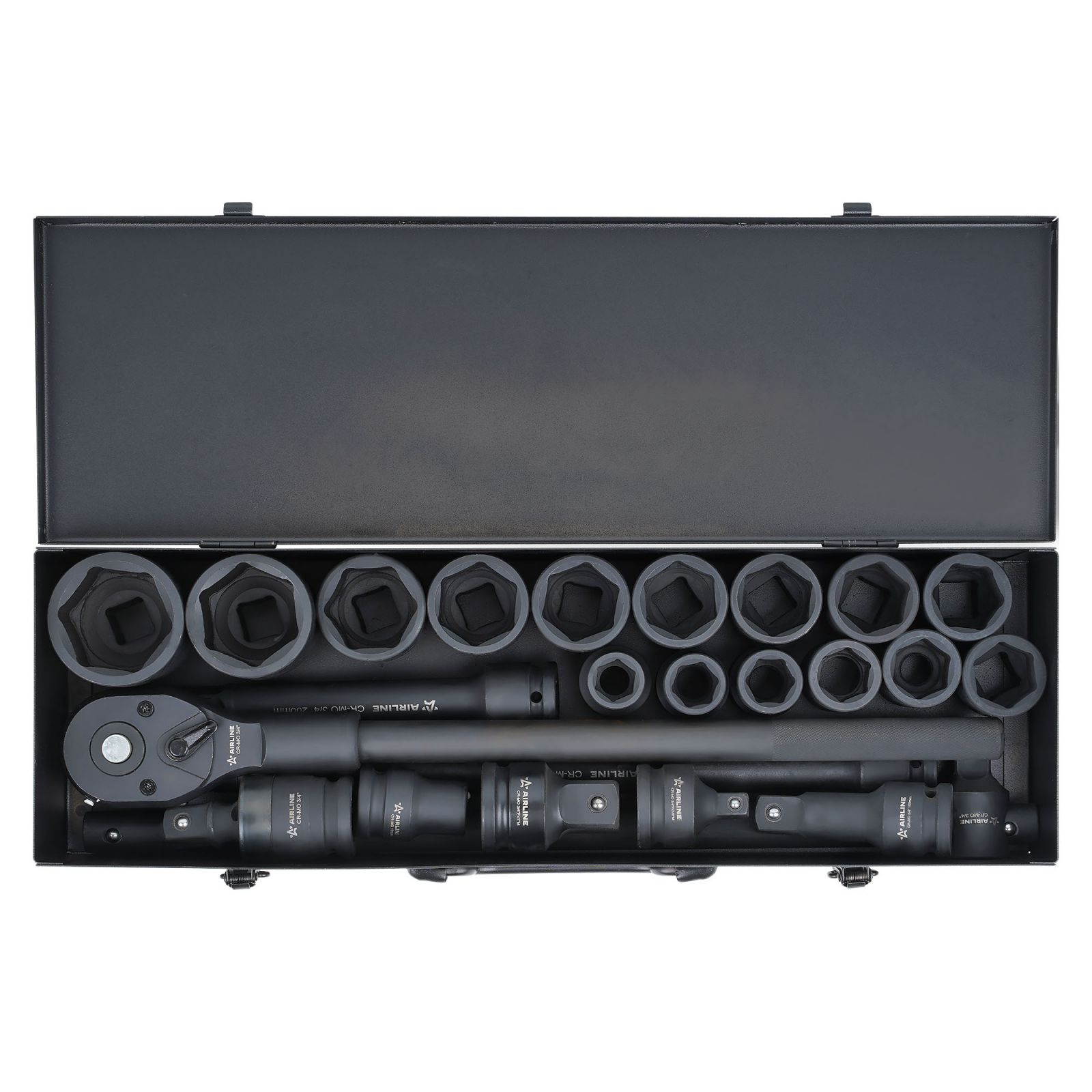 Набор головок ударных 3/4" DR L=56мм, 12гр. 17пр. (19-55мм) металл.кейс (ATAS827)