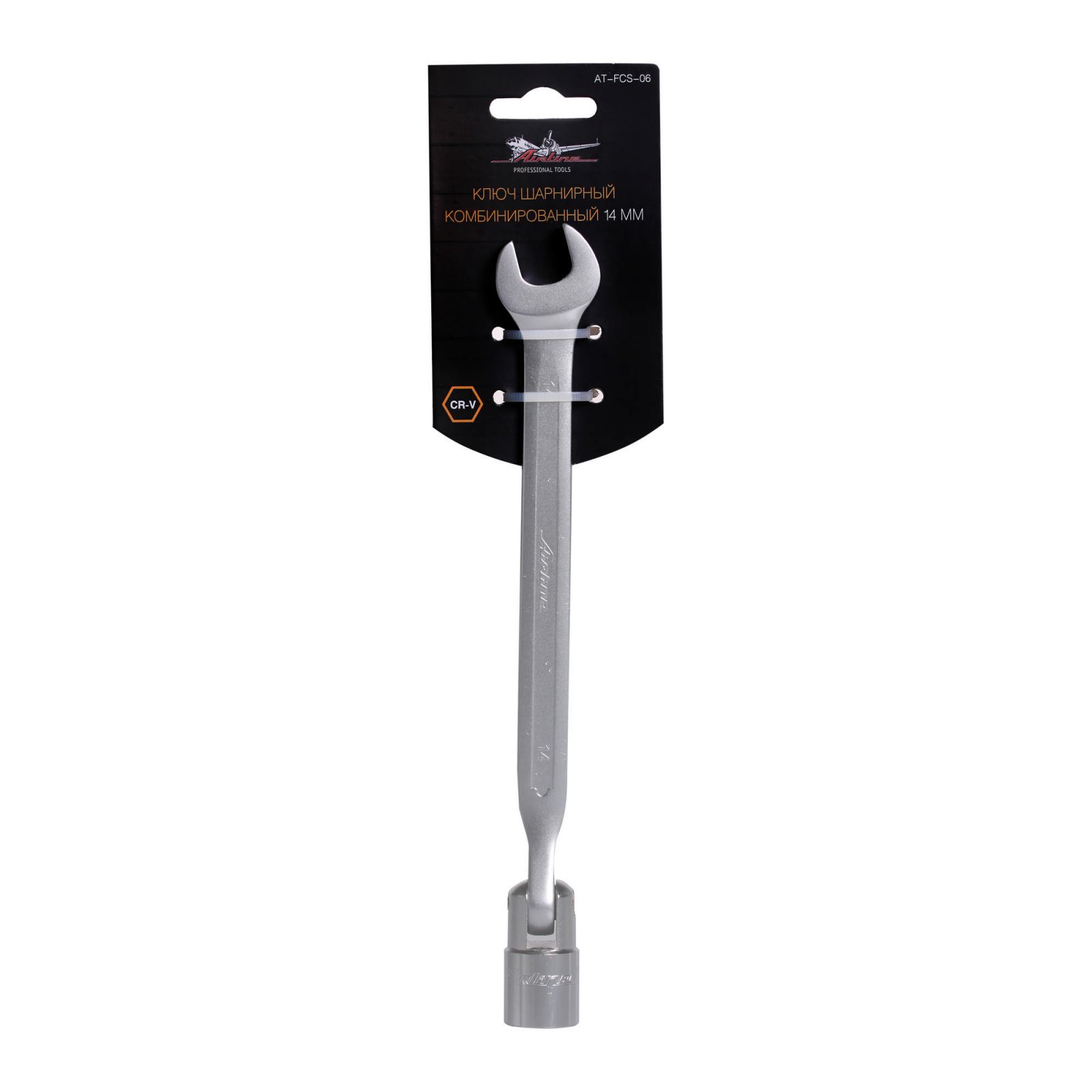 Ключ комбинированный шарнирный 14мм PRO пласт.подвес (AT-FCS-06)