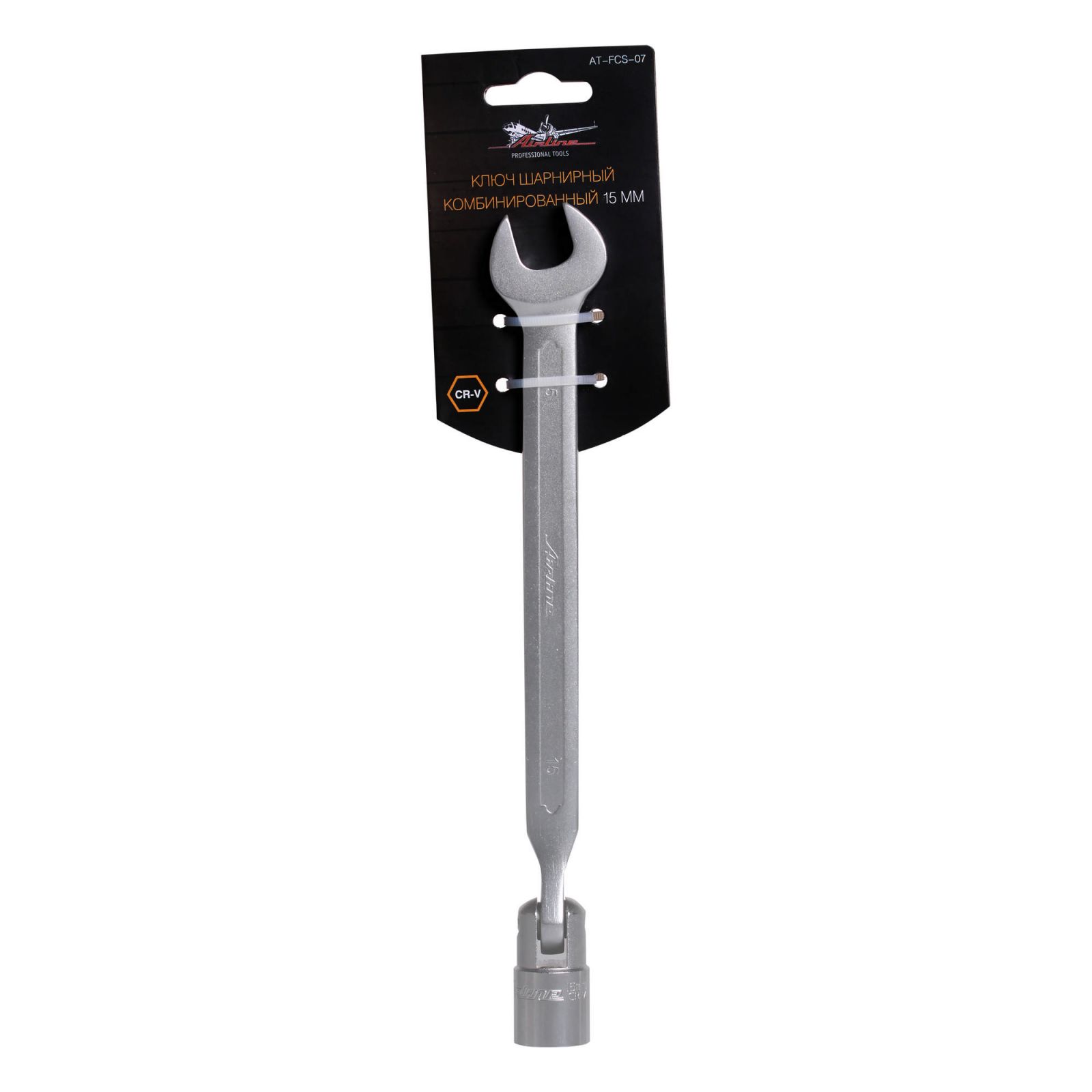 Ключ комбинированный шарнирный 15мм PRO пласт.подвес (AT-FCS-07)
