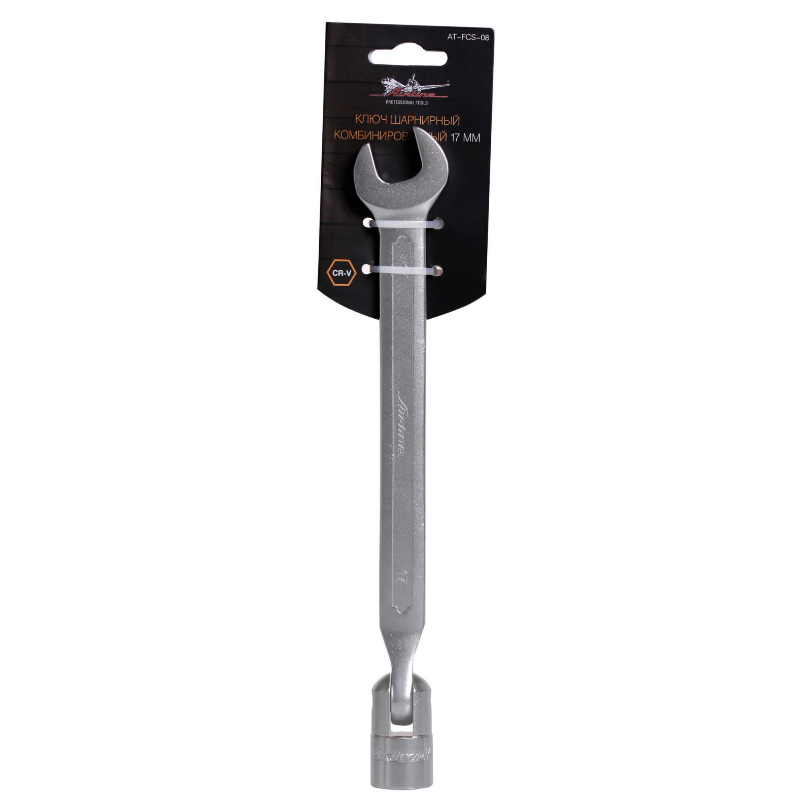 Ключ комбинированный шарнирный 17мм PRO пласт.подвес (AT-FCS-08)