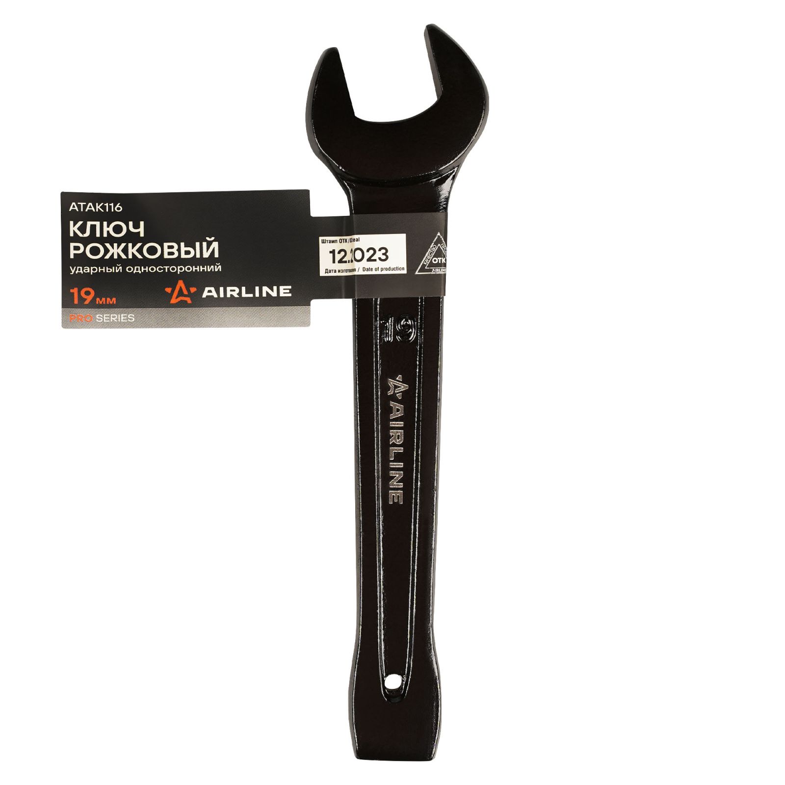 Ключ рожковый ударный односторонний 19мм (ATAK116)