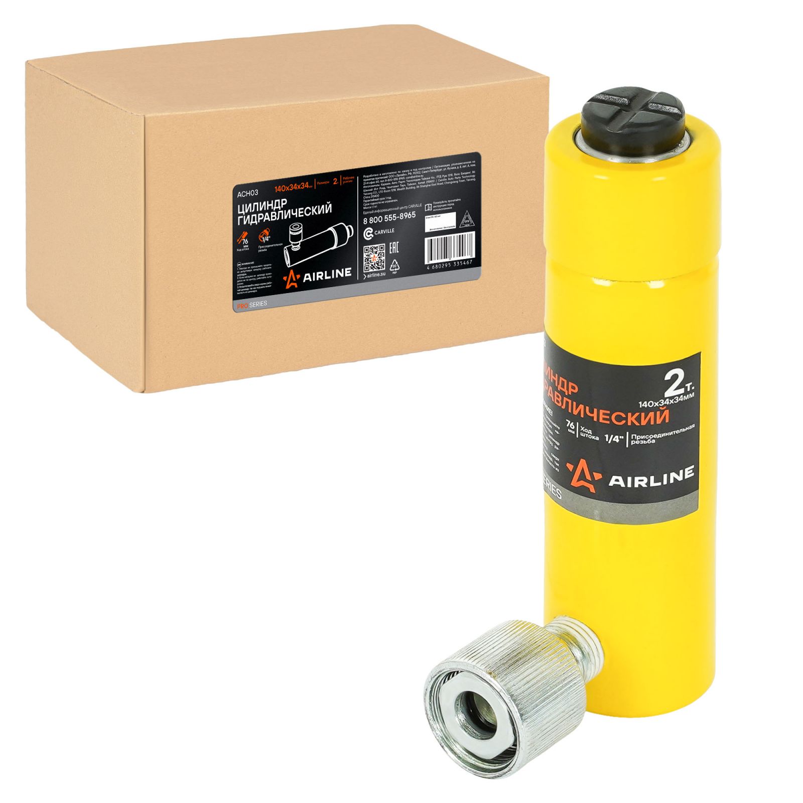 Цилиндр гидравлический 2т, 140х34х34мм (ACH03)
