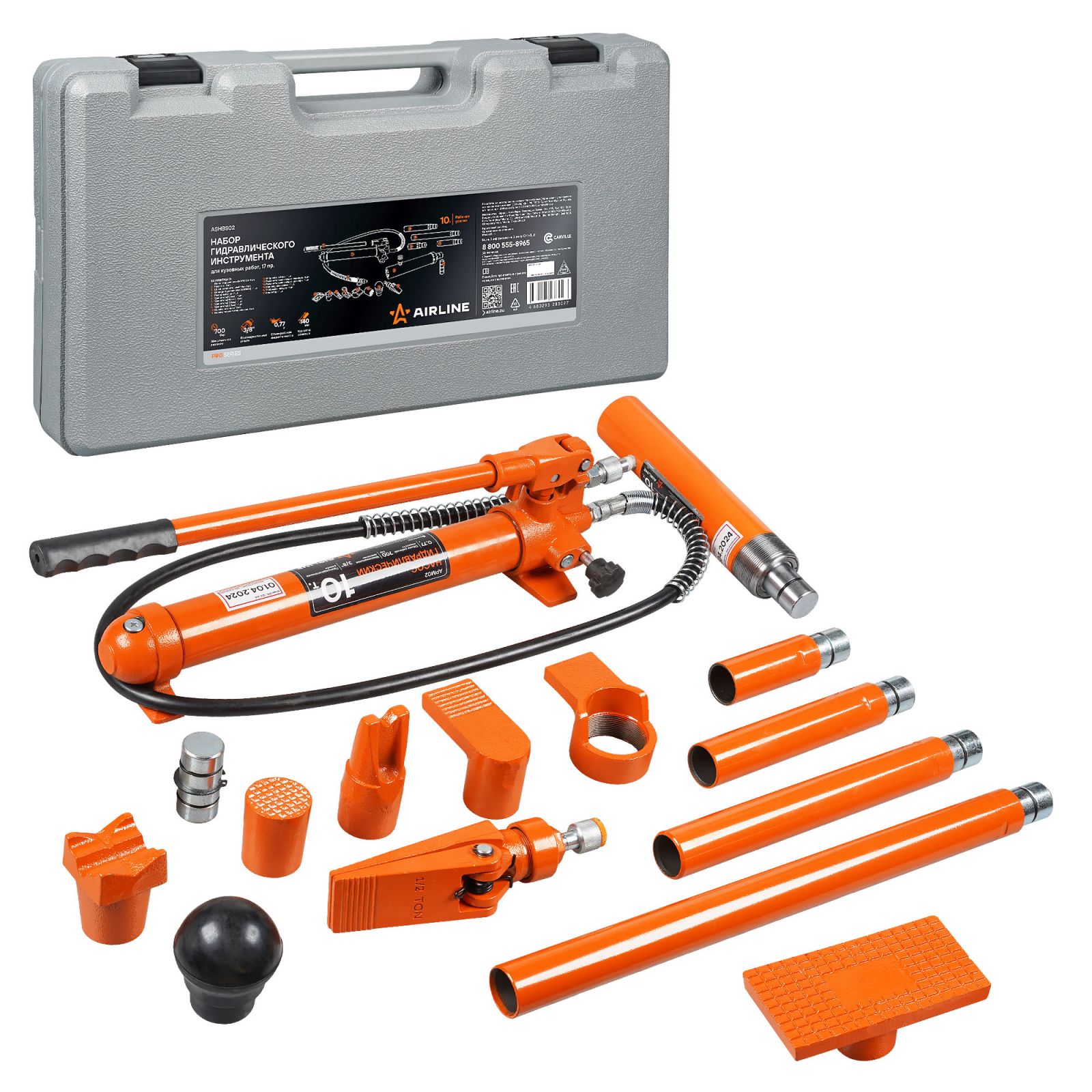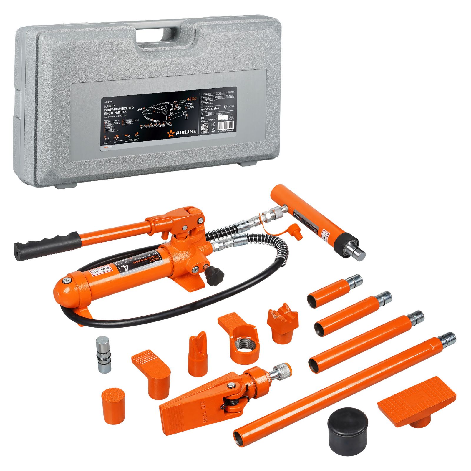 Растяжка гидравлическая для кузовных работ 4т, набор 17 пр., пласт. кейс (ASHBS01)