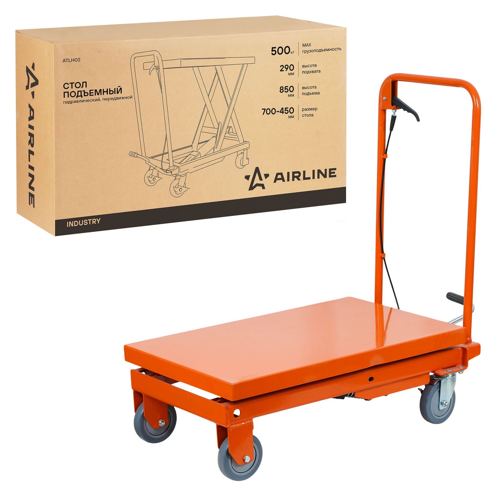 Стол подъемный гидравлический г/п 500кг 290-850мм передвижной, платформа 700х450мм (ATLH02)