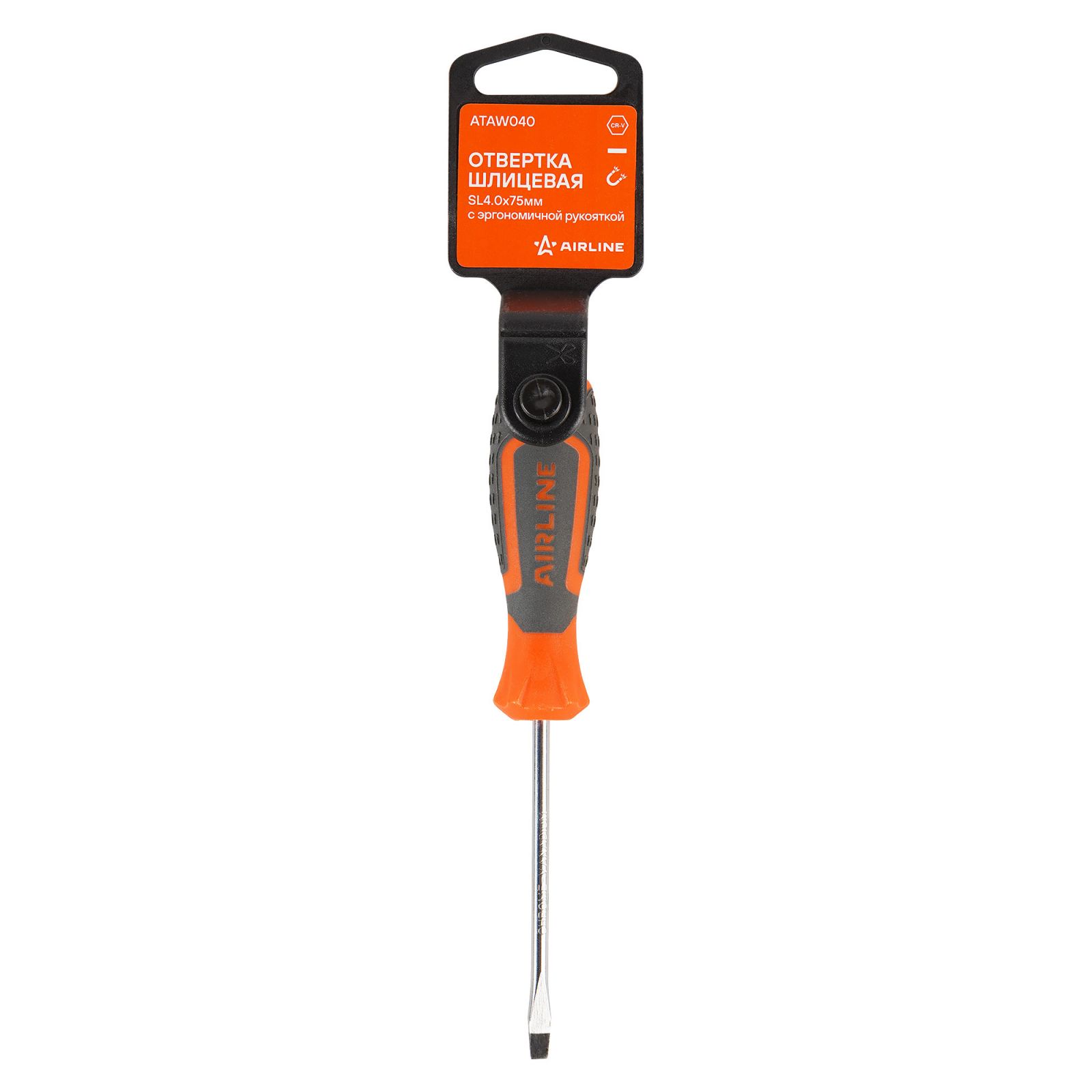 Отвертка шлицевая SL4.0x75мм, магнитный наконечник, пласт.подвес (ATAW040)
