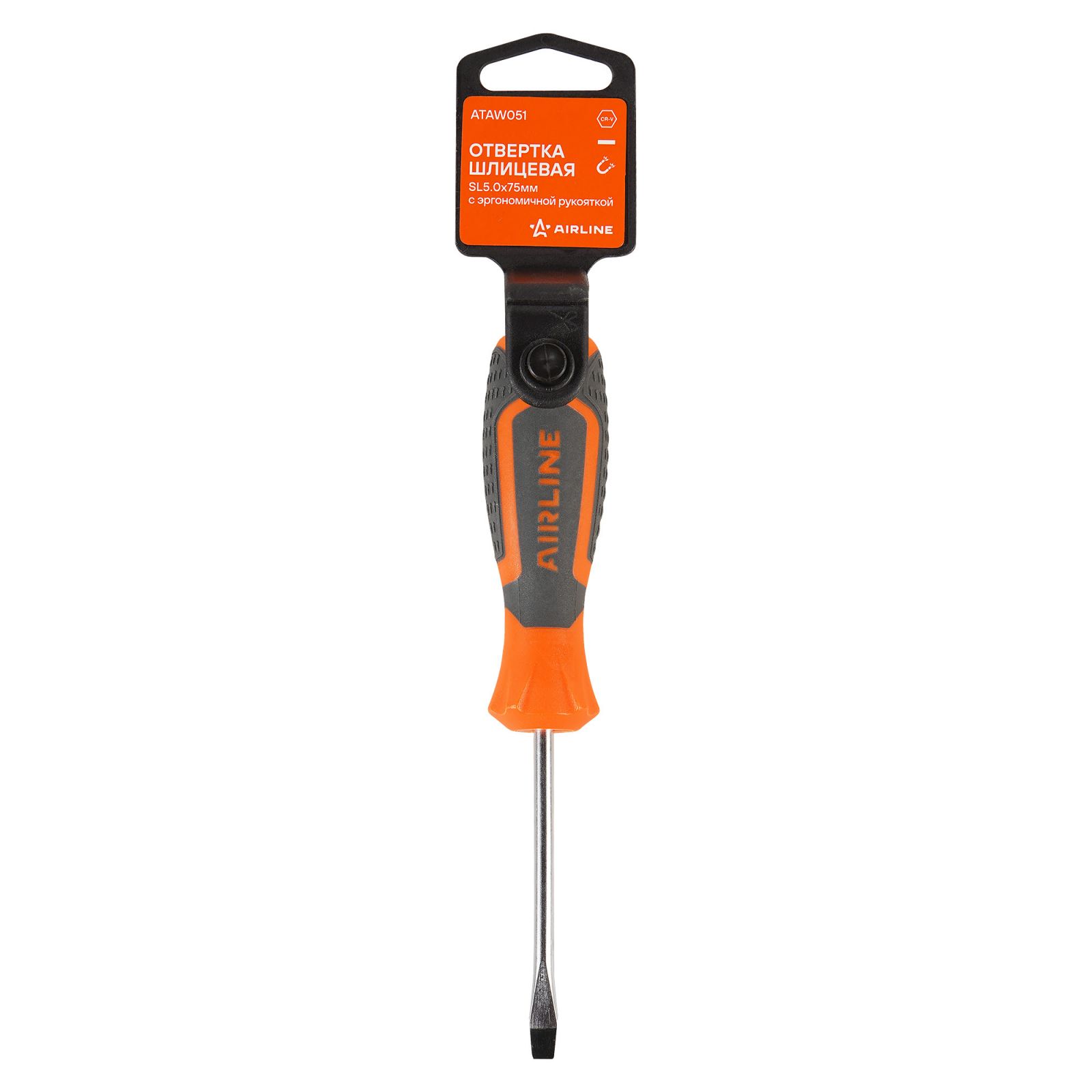 Отвертка шлицевая SL5.0x75мм, магнитный наконечник, пласт.подвес (ATAW051)
