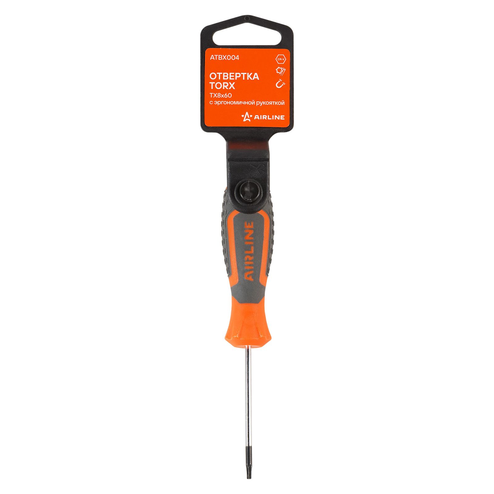 Отвертка TORX TX8x60, магнитный наконечник, пласт.подвес (ATBX004)