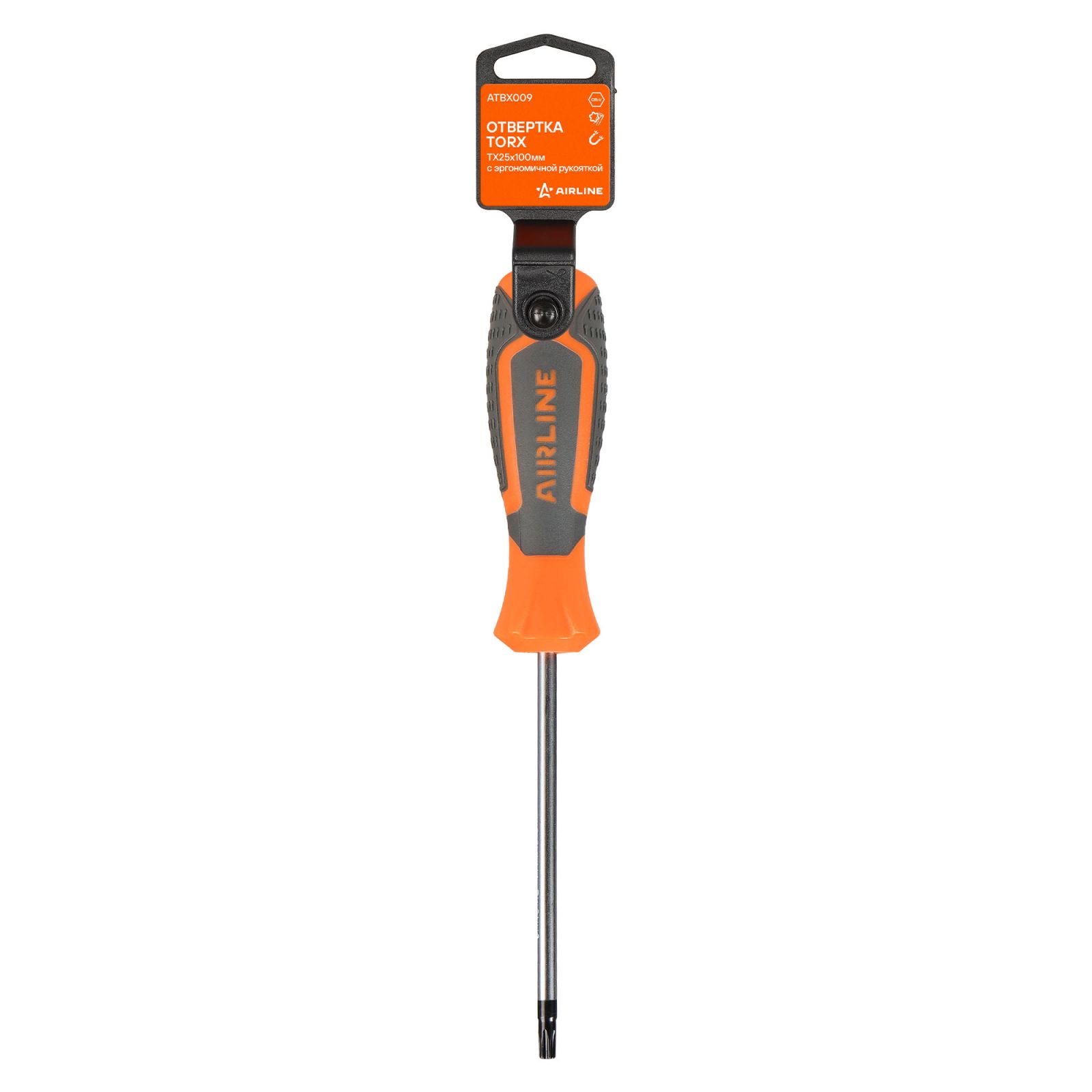 Отвертка TORX TX25x100мм, магнитный наконечник, пласт.подвес (ATBX009)