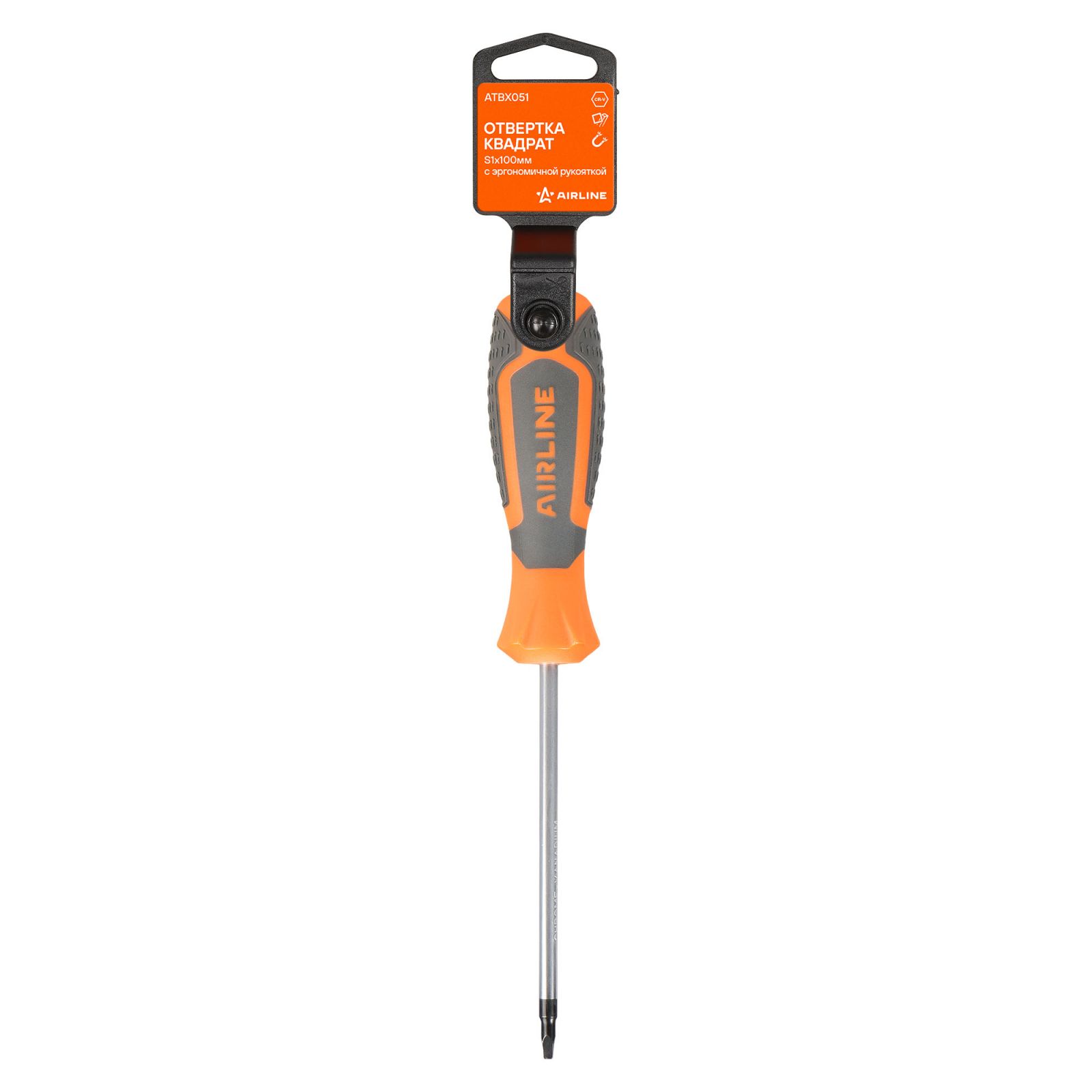 Отвертка квадрат S1x100мм, магнитный наконечник, пласт.подвес (ATBX051)