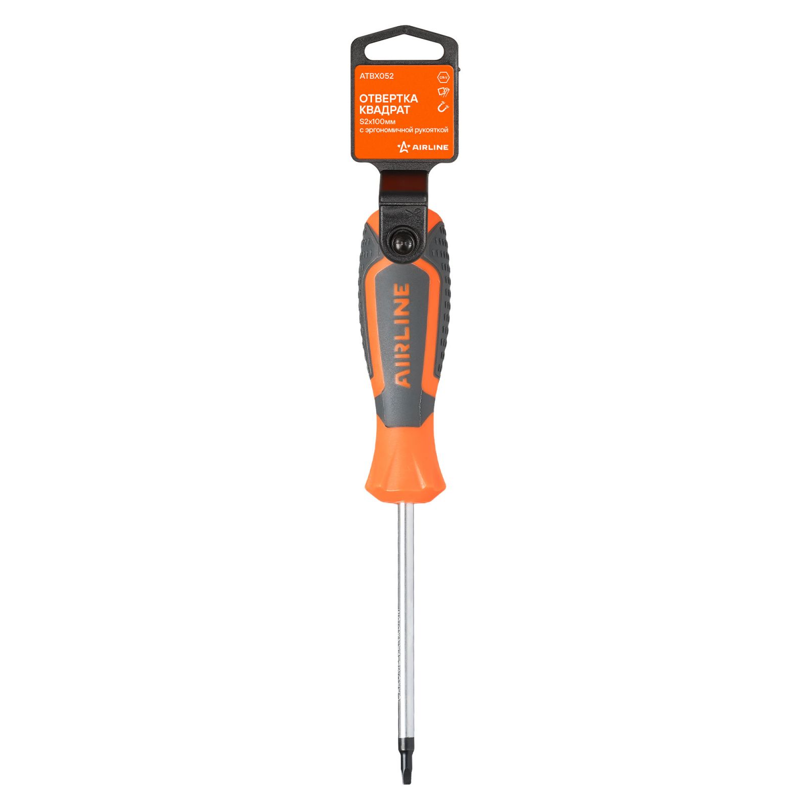 Отвертка квадрат S2x100мм, магнитный наконечник, пласт.подвес (ATBX052)
