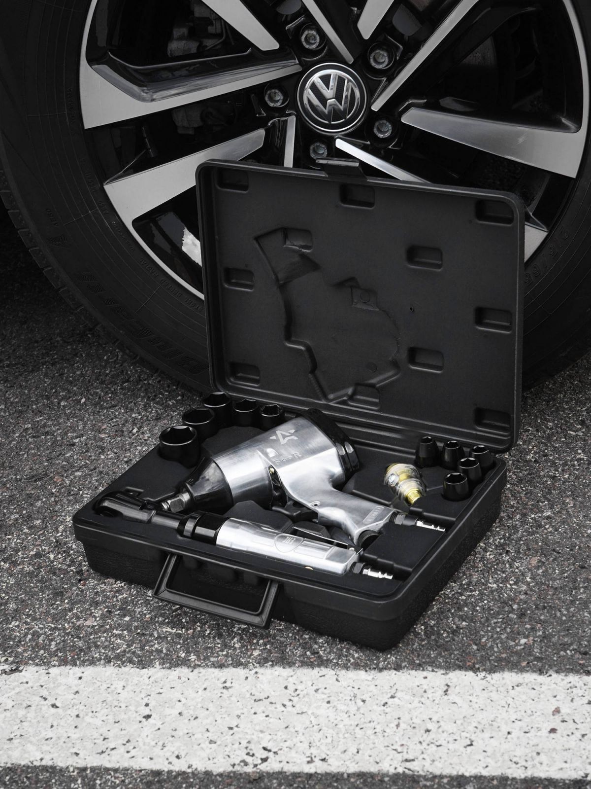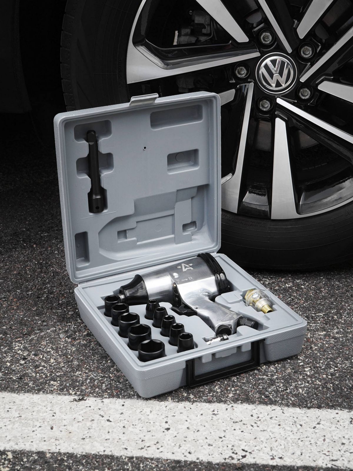 Гайковерт пневматический 1/2"DR 330Нм, трещотка 1/2"DR 61Нм, набор с головками 17 пр. кейс (ATAZ100)